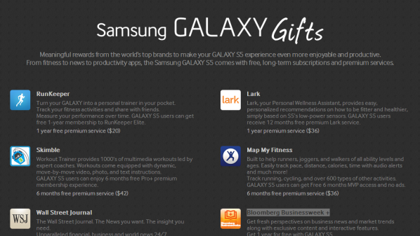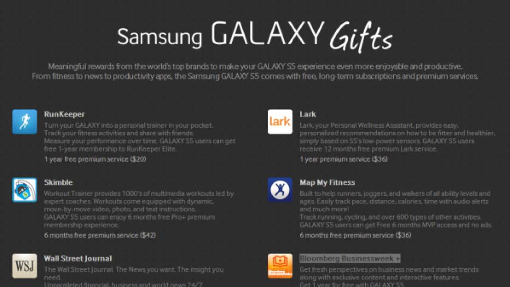 تعتزم شركة “سامسونج” طرح هاتفها الذكي الجديد “جالاكسي إس 5″ مع عرض بقيمة 500 دولار أمريكي، ييتح لمالكي الجهاز المستقبليين الحصول على اشتراكات مجانية ومحدودة في العديد من الخدمات والتطبيقات المدفوعة. ومع أن الشركة لم تفصح إلى الآن عن السعر المقرر لهاتفها الجديد، إلا أنها تسعى من خلال هذه الخطوة جذب المستهلكين لاقتنائه، حيث تتيح لهم ضمن العرض الذي أطلقت عليه اسم “سامسونج جالاكسي جيفتس” Samsung Galaxy Gifts، الحصول على العديد من الامتيازات. وتقدم “سامسونج” من خلال العرض اشتراكات مجانية ومحدودة في مختلف الخدمات والتطبيقات المدفوعة، ومساحة تخزين سحابية، حيث فصلت الشركة ضمن الصفحة الرسمية الخاصة بالعرض الجديد أسماء التطبيقات والخدمات والألعاب التي ستتوفر لمستخدمي “جالاكسي إس 5″. وتتضمن القائمة في الدرجة الأولى تطبيقات الحوسبة الحسابية، وتطبيقات الأخبار، وتطبيقات اللياقة البدينة، حيث توفر للمستخدمين اشتراكًا مجانيًا في صحيفة “وول ستريت جورنال” لمدى ستة أشهر بقيمة 160 دولارًا، واشتراكًا لمدة 12 شهرًا ضمن خدمة “بلومبيرج بيزنس ويك بلس” Bloomberg Businessweek + بقيمة 30 دولارًا. ويوفر العرض أيضًا ما مجموعه 1.5 تيرابايت من مساحة التخزين السحابي ضمن خدمتي “بوكس” Box و “بيتكاسا” Bitcasa، وغيرهم العديد من الخدمات والتطبيقات والألعاب. وتعتزم شركة “سامسونج” طرح هاتفها في 150 بلدًا حول العالم ابتداءً من 11 نيسان/أبريل القادم، ومع أن الشركة لم تفصح عن السعر المقرر للجهاز إلا أن التقارير تشير إلى أنه سيأتي بسعر أقل من سلفه “جالاكسي إس 4″. وكانت الشركة قد كشفت عن “جالاكسي إس 5″ في 24 شباط/فبراير الماضي ضمن حدث أقامته خلال مشاركتها في “مؤتمر الجوال العالمي 2014″ MWC 2014، وهو يأتي بالإصدار 4.4.2 “كيت كات” من نظام التشغيل “أندرويد”. ويمتاز الجهاز بشاشة من نوع “سوبر أمولد” بقياس 5.1 بوصة وبالدقة الكاملة 1080p، ويعمل الجهاز الذي سيتوفر بنسختين من حيث المعالج، بمعالج “سنابدراجون 801″ رباعي النوى، مع 2 جيجابايت من ذاكرة الوصول العشوائي، و 16 جيجابايت من ذاكرة التخزين الداخلية القابلة للتوسعة حتى 128 جيجابايت عن طريق بطاقات ذاكرة خارجية من نوع “مايكرو إس دي”.