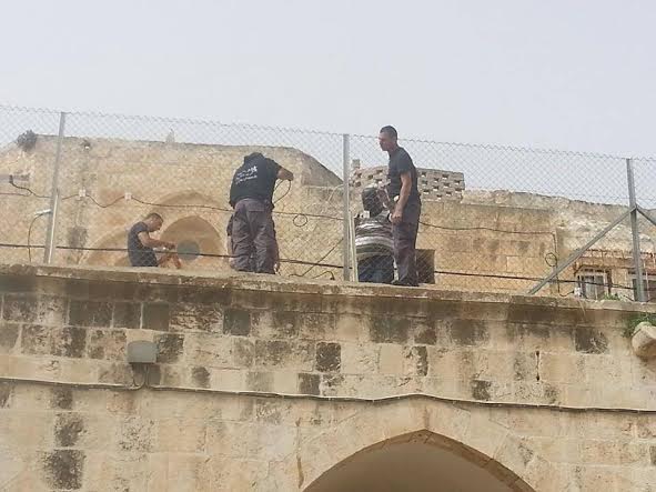 تركيب وصيانة للسياج الأمني فوق أحد أبواب الأقصى