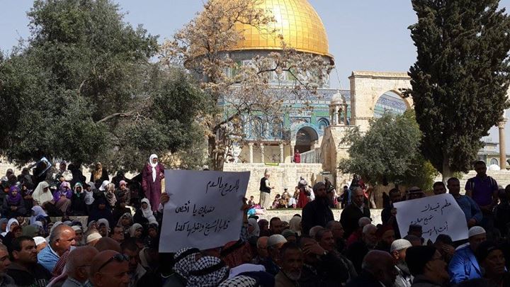 شارك العشرات من المصلين وطلاب مصاطب العلم الخميس في وقفة داخل المسجد الأقصى المبارك تضامنًا مع رئيس الحركة الإسلامية في الداخل الفلسطيني المحتل الشيخ رائد صلاح. وتأتي هذه الوقفة احتجاجًا على قرار محكمة الصلح الإسرائيلية بالقدس المحتلة الحكم على الشيخ صلاح بالسجن الفعلي ثمانية أشهر، وثمانية أخرى مع وقف التنفيذ بتهمة "التحريض على العنف" في قضية خطبة "وادي الجوز". ورفع المشاركون خلال الوقفة التي نُظمت على مصطبة الكأس أمام الجامع القبلي المسقوف، شعارات ولافتات منددة بالحكم الصادر بحق الشيخ صلاح، ومؤيدة له. وأكدوا رفضهم لسياسة الاحتلال الإسرائيلي في ملاحقة الشيخ صلاح، واستهداف القيادات السياسية بالداخل المحتل ومدينة القدس، مشددين على وقفوهم إلى جانبه في هذا التضييق عليه. بدوره، أوضح المنسق الإعلامي لمؤسسة الأقصى للوقف والتراث محمود أبو العطا أن الشيخ صلاح له محبة كبيرة واحترام شديد خاصة في القدس والمسجد الأقصى، بصفته أفنى حياته كلها من أجل الدفاع عن القدس والأقصى، والقضية الفلسطينية برمتها. وبين أن هذا التضامن مع الشيخ صلاح يدلل على مركزيته في قضية القدس والأقصى، وهو يعتبر الأب الحنون للكثير من أهل المدينة المقدسة. وكانت العديد من المؤسسات والشخصيات في القدس والداخل أدانت الحكم الذي أصدرته محكمة الصلح بحق الشيخ رائد صلاح في ملف "خطبة واد الجوز" من أحداث يوم الجمعة الموافق 16 فبراير 2007، والذي جاء على خلفية جريمة الاحتلال بهدم جزء من الأقصى. كما تظاهر العشرات من أهالي بلدة كفر كنا بدعوة من الحراك الشبابي مساء الأربعاء على الشارع الرئيس بالبلدة تنديدًا بالحكم الصادر بحق الشيخ صلاح. ورفعوا شعارات منددة بالاستهداف السياسي لقيادة الداخل، من بينها "ما بنهاب ما بنهاب حكم المحاكم إرهاب"، "شيخ الاقصى يا صلاح صرختك صرخة إصلاح"، و"يا للعار سجنوا كلام الاحرار"، وشعارات أخرى تؤكد على مواجهة السياسات التي تستهدف القيادات السياسية لفلسطينيي الداخل.
