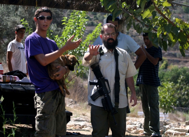 مستوطن يحمل سلاحا رشاشا بالضفة
