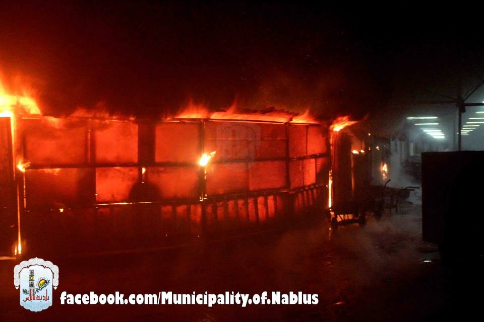 شب حريق ضخم منتصف ليلة الاثنين بسوق البسطات الشرقي في مدينة نابلس شمال الضفة الغربية وأتت النيران على جزء كبير فيه. وقالت اطفائية بلدية نابلس إن طواقمها هرعت إلى المكان وأخمدت الحريق الذي تسبب بأضرار جسيمة، حيث قام رجال الإطفاء بمحاصرة النيران وعزلها عن الامتداد إلى أماكن أخرى. يذكر بأن السوق تعرض للحريق ثلاث مرات خلال عام كان آخرها قبل نحو شهر، حيث يطالب أصحاب البسطات البلدية والشرطة بفتح تحقيق لكشف ملابسات الحرائق التي تسببت لهم بأضرار مادية.