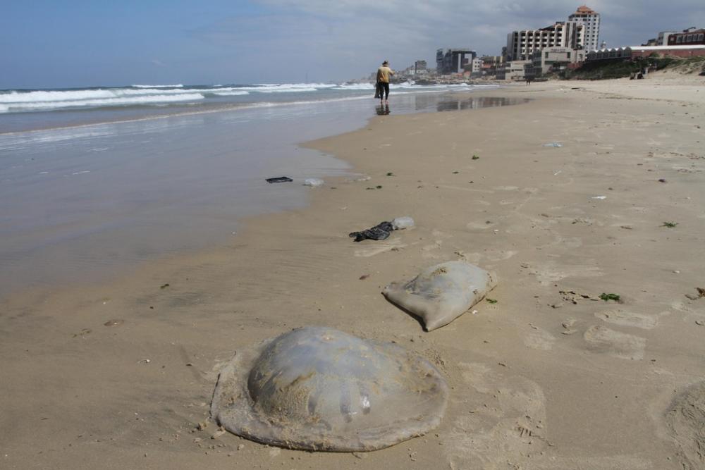 الأمواج تقذف أفواجًا من القناديل الحمراء لشاطئ غزة