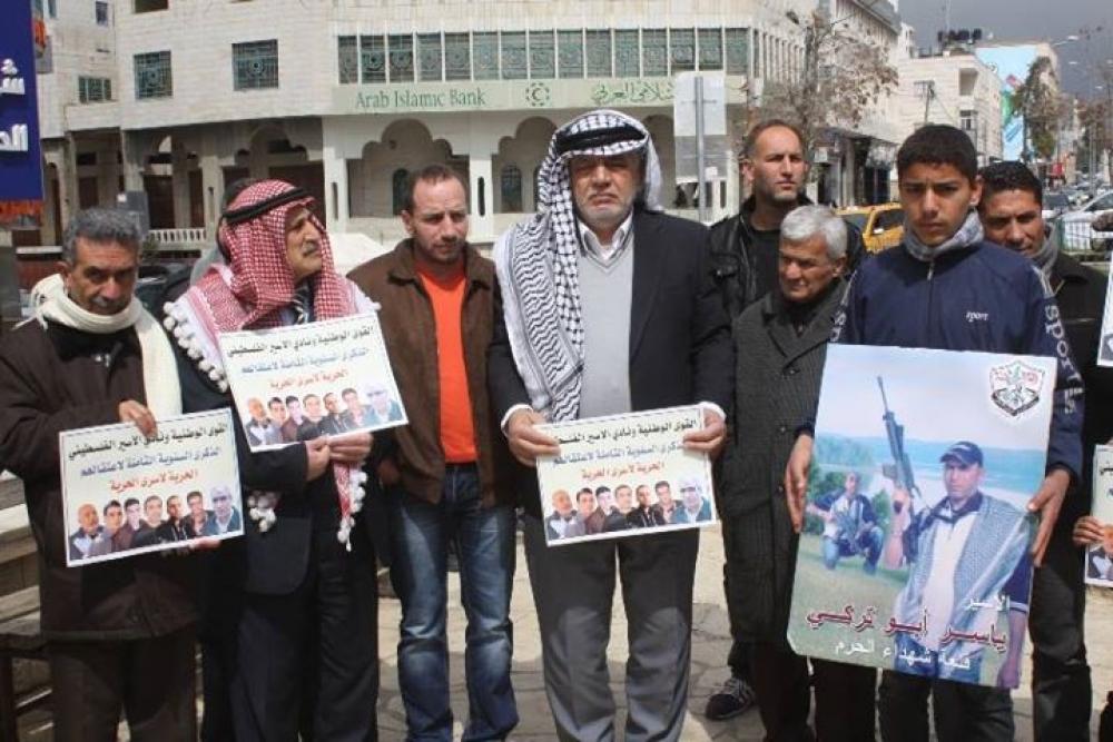 نظّم نادي الاسير الفلسطيني في محافظة الخليل والقوى الوطنية السبت وقفة تضامنية على دوار ابن رشد وسط الخليل في الذكرى الثامنة لاختطاف الامين العام للجبهة الشعبية أحمد سعدات ورفاقه. وشارك في الوقفة التضامنية ممثلي القوى الوطنية وكوادر فصائل منظمة التحرير وجمعية المتقاعدين العسكريين وحركة اقليم وسط الخليل واتحاد لجان المرأة واللجنة الوطنية لاسترداد جثامين الشهداء. ورفع المشاركون في الوقفة صور الاسرى وعلى رأسهم الامين العام للجبهة الشعبية احمد سعدات ورفاقه واللواء فؤاد الشوبكي وياسر أبو تركي قائد كتائب شهداء الأقصى. وأكّد القيادي بالجبهة الشعبية بدران جابر لوكالة "صفا" أنّ الفعالية هدفت بالدرجة الأولى للتذكير بمعاناة هؤلاء الأسرى الذين جرى اعتقالهم من سجن أريحا الفلسطيني، والتأكيد على انتهاك الاحتلال لم تمّ الاتّفاق عليه من رعاية أمريكية للسجن والمعتقلين داخله، إضافة إلى التأكيد على عدم التزام الاحتلال لأيّ تفاهمات أو عهود. وقال: إن هذه الفعالية حملت رسائل مختلفة، أبرزها أنّه لا يجب أن ننسى أسرانا في سجو الاحتلال، إضافة إلى أن الوثوق بالعهود الأمريكية والبريطانية هي أوهام لا يجب أن نتعلّق بها وبالدليل القاطع ما جرى للمعتقلين بسج أريحا، والرسالة الثالثة عن مدى تحمّل مسؤوليتها ومن المسؤول عن تسليم المختطفين فؤاد الشوبكي وأحمد سعدات ومجموعته وياسر أبو تركي. وأكّد أنّ ما نطلبه في الذكرى الثامنة لاختطاف معتقلي سجن أريحا أن تتحمّل السلطة مسؤولياتها والضغط على الجهات الضامنة للاتفاقية أن تلعب دورها في الإفراج عن مجموع الأسرى الذين تم اختطافهم من سجن أريحا. وقال "لا بدّ من التأكيد على أنّ أمريكا وأوروبا هم حليف للاحتلال، وعدم ترك تقرير مصير شعبنا لهذه الفئة من النّاس، ويجب البحث عن حلفاء أكثر أمانة ووفاء مع القانون الدولي الذي يكفل للفلسطينيين كامل حقوقهم. وبيّن جابر بأنّ هذه الفعالية سنوية في الذكرى، لكنّ الجديد في هذا العام أنّ هذه الفعالية ستكون انطلاقة ليوم تضامني مع الأسرى المختطفين والمرضى. أمّا مدير نادي الأسير بالخليل أمجد النجار أكّد على أن الذكرى السنوية الثامنة لاختطاف هؤلاء القادة واستذكارهم في هذه الوقفة التضامنية لهو وصمة عار على الدول التي رعت الاتفاق وهي بريطانيا وأمريكا التي لم تحرك ساكنا للجم اسرائيل عن جريمتها بحق هؤلاء القادة. وطالب الأمم المتحدة بإعادة فتح هذا الملف وتشكيل لجنة تحقيق دولية والإفراج الفوري عن هؤلاء الاسرى، معتبرا ما جرى بحقهم قرصنة وحشية مخالفة لكل القوانين الدولية.