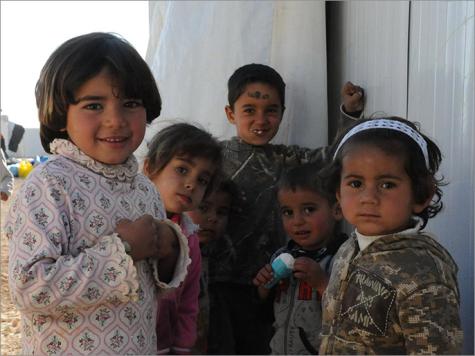أطفال سوريون داخل مخيم الزعتري للاجئين بالأردن