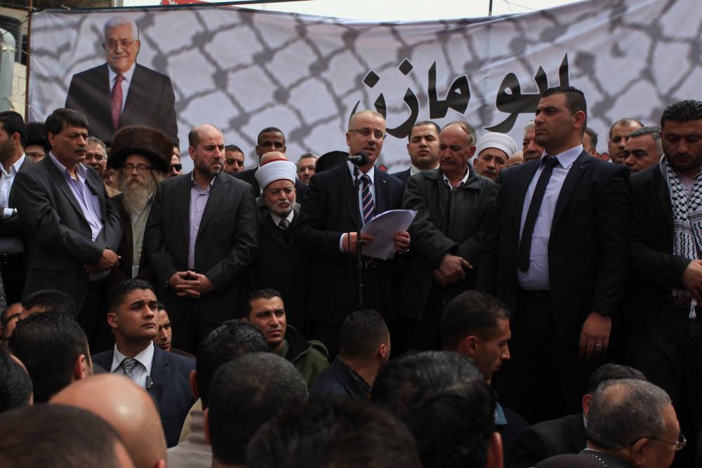 قال رئيس الحكومة الفلسطينية في رام الله رامي الحمد الله الاثنين: "إننا لن نقبل أن نكون أبدًا مكبلين أو تابعين أو مُستضعفين، وسنواجِه بمسؤولية التحديات والضغوطات التي تُحيطُ بنا". وأضاف "تَلبية احتياجات أبناء شعبِنا وتعزيز صُمودِهم في مُواجهة ظُلم الاحتلالِ الإسرائيليّ سيبقى مهمَتَنا الأساسية، وسيظلُ تحدينا الأكبر هو تحقيق المُصالحة وإعادة الوحدة للوطنِ ومؤسساتِهِ". جاءت تصريحات الحمد الله خلال مسيرة في ميدان المنارة وسط رام الله لمساندة للرئيس محمود عباس تزامنًا مع لقائه الرئيس الأمريكي باراك أوباما في واشنطن، بحضور قيادات في منظمة التحرير وحركة فتح وشخصيات وطنية وحشد من المواطنين. وأكد رئيس حكومة رام الله أن مشروعنا الوطني وقراراتنا ستظل مستقلة محصنة، "وسنبقى جميعًا وفي مقدمتنا الرئيس أبو مازن راسخين ومُتجذرين في أرضِ وطنِنا".