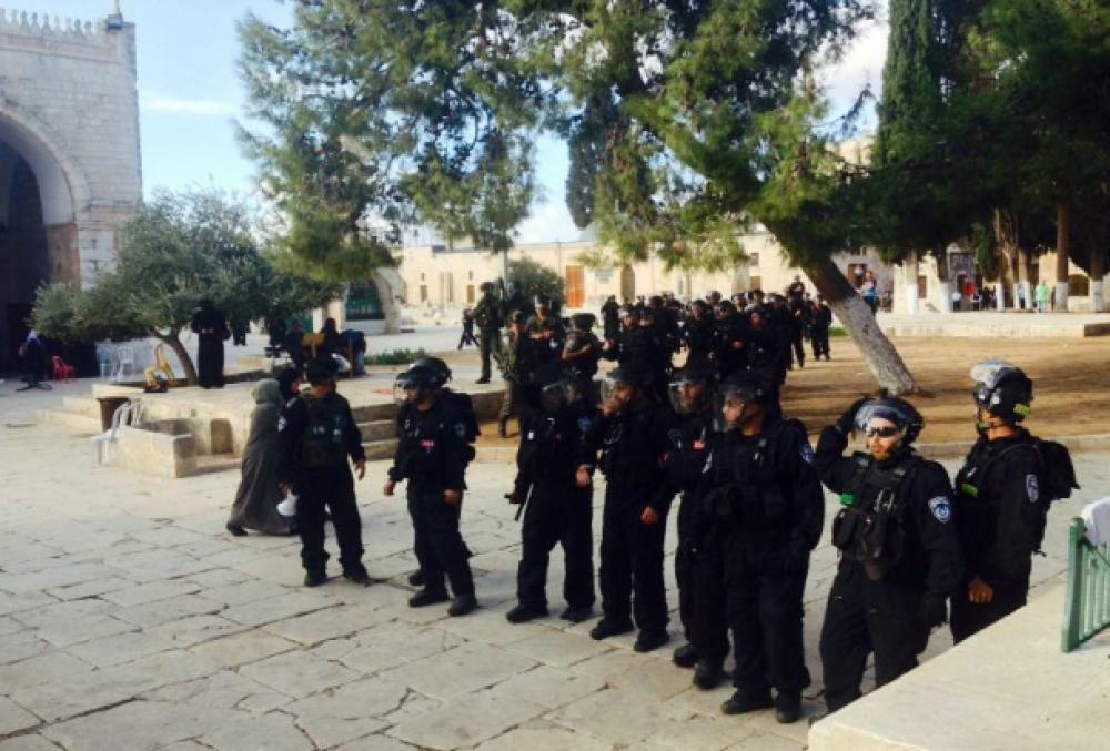 اقتحم جنود الاحتلال الإسرائيلي بلباسهم العسكري صباح الأربعاء المسجد الأقصى المبارك من جهة باب المغاربة وسط حراسة مشددة من القوات الإسرائيلية الخاصة. وقال المنسق الإعلامي لمؤسسة الأقصى للوقف والتراث محمود أبو العطا لوكالة "صفا" إن 100 جندي إسرائيلي اقتحموا برفقة أحد المرشدين اليهود المسجد الأقصى على دفعتين، ونظموا ما يشبه "بالمسيرة العسكرية" بدءًا من باب المغاربة وحتى منطقة باب السلسلة. وأضاف أن الجنود المقتحمين تلقوا شروحًا عن الهيكل المزعوم ومعالمه، وتوزعوا في أنحاء متفرقة من الأقصى، تزامن ذلك مع اقتحام 20 مستوطنًا للمسجد، وعشرة من عناصر المخابرات الإسرائيلية الذين اقتحموا الأبنية المسقوفة، مثل المصلى المرواني والجامع القبلي المسقوف. وأوضح أن حالة من الغضب الشديد تسود باحات الأقصى، وتتعالى أصوات التكبيرات من قبل المصلين وطلاب وطالبات مصاطب العلم رفضًا لتلك الاقتحامات والاعتداء على المسجد. وأفاد أن شرطة الاحتلال المتمركزة على بوابات الأقصى احتجزت البطاقات الشخصية للداخلين إليه، لافتًا إلى أنه تم مساءلة أحد طلاب العلم عندما اعترض على قيام أحد الحاخامات اليهود بتصوير الطلاب، حيث جرى التحقيق معه في مركز الشرطة لمدة ساعة ونصف، ومن ثم أطلق سراحه. وأشار إلى وجود حالة استنفار وتواجد إسرائيلي مكثف داخل الأقصى وعلى بواباته، مبينًا أن الفترة الأخيرة شهدت اعتداءات مكثفة على المسجد، مما يدلل على أن الأحدث مرشحة للتصعيد أكثر خلال الفترة المقبلة. ودعا أبو العطا إلى تكثيف التواجد الفلسطيني والرباط الدائم بالأقصى للدفاع عنه، قائلًا "كلنا ثقة بالأمة الإسلامية والشعوب العربية للتحرك العاجل من أجل كرامة الأقصى، خاصة في ظل هذه اللحظة التاريخية الفارقة". وأكد أن ممارسات الاحتلال تأتي لتهيئة الأجواء لفرض التقسيم الزماني والمكاني للأقصى، والتدريب لإمكانية فرض سيناريو الاقتحامات المتزايدة".
