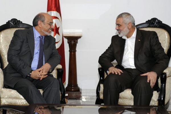 دعا رئيس الحكومة الفلسطينية بغزة الرئيس التونسي المنصف المرزوقي لأن تكون القضية الفلسطينية على أولويات أجندته في القمة العربية المقبلة في الكويت. وأطلع هنية المرزوقي في اتصال هاتفي بينهما مساء السبت على تطورات الأحداث والتطورات على القضية الفلسطينية وتهويد القدس وتصاعد الاستيطان وإطباق الحصار على غزة واستمرار الاستهداف لأبناء شعبنا. من جانبه، أكد المرزوقي أن الشعب التونسي لم ولن يترك الفلسطينيين وستبقى القضية الفلسطينية من أهم قضايا تونس.