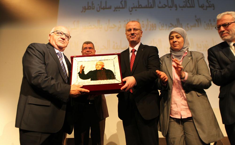 أكد رئيس وزراء الحكومة في رام الله رامي الحمد الله الأحد، على ضرورة بذل كل جهد ممكن على كافة المستويات الرسمية والشعبية لحث المجتمع الدولي بكافة قواه ومنظماته ومؤسساته المدافعة عن حقوق الانسان لإلزام الكيان الإسرائيلي بوضع حد لمعاناة الأسرى لديه والاستجابة لمطالبهم العادلة. وشدد الحمد الله خلال كلمة ألقاها في حفل توزيع الجوائز على الفائزين في مسابقة جائزة الحرية في رام الله، على ضرورة وقف كافة الانتهاكات والممارسات اللاانسانية بحق الأسرى سيما التعذيب والمعاملة القاسية والاعتقال الاداري وسياسة العزل الانفرادي غير الانسانية، والحرمان من زيارة الاهل. وأشار الحمد الله إلى أن هذا الحفل يعتبر مبادرة هامة لتسليط المزيد من الضوء على واقع ومعاناة الأسرى والأسيرات في سجون الاحتلال، وعلى صمودهم الأسطوري لنيل حقهم وحق الشعب الفلسطيني في الكرامة والخلاص التام من الاحتلال، إضافة إلى أنها جزء من العمل الوطني والمسؤول الذي من خلاله سيتم رفع صوت الأسرى والتذكير بتضحياتهم. وأكد أن القيادة الفلسطينية لن يهدأ لها بال الا بإطلاق سراح جميع الأسيرات والأسرى القدامى والأسرى المرضى والأطفال والأسرى المضربين عن الطعام، كمقدمة لإطلاق سراح الأسرى جميعهم دون تمييز أو شروط. وشكر الحمد الله وزارتي الاسرى والثقافة على هذه المبادرة والتي تعد مكونا أساسيا لإغناء المكتبة الفلسطينية، والذاكرة الوطنية بالعديد من الاسهامات الثقافية والنوعية التي تكرم أسرانا وتدون بطولاتهم وصمودهم، إضافة إلى كافة المتسابقين والمتسابقات أصحاب الأفكار المبدعة.