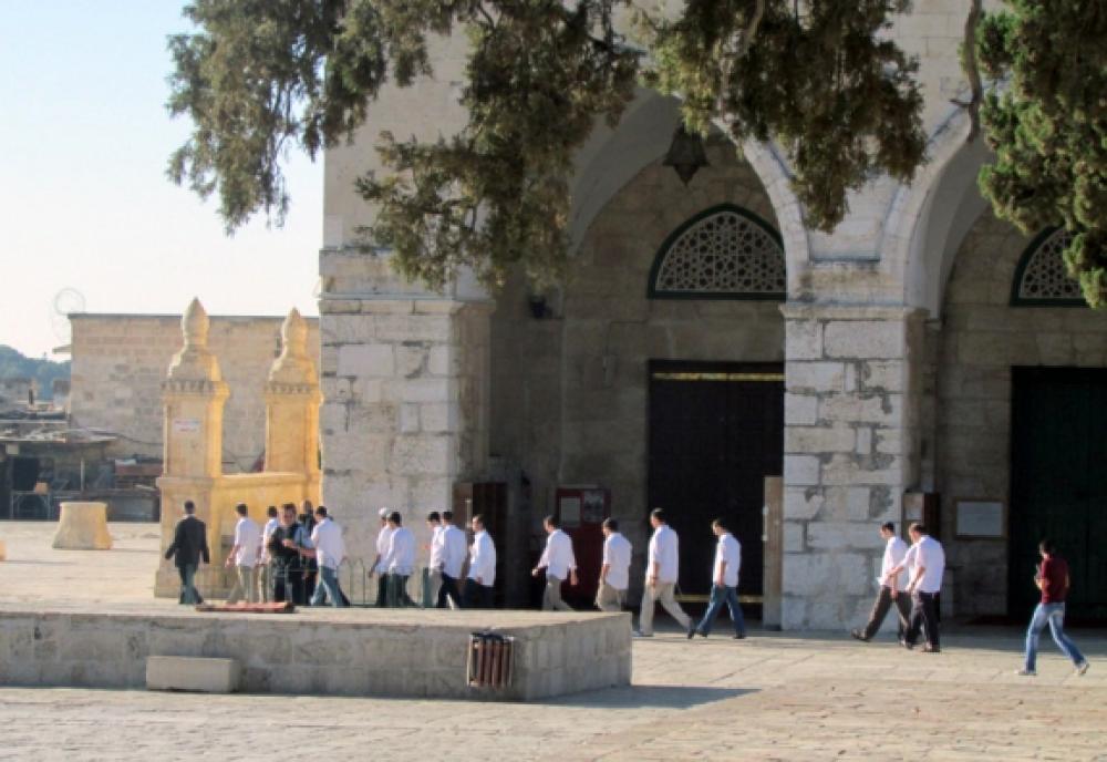 نفذ عشرات المستوطنين والطلبة اليهود وعناصر من المخابرات الإسرائيلية صباح الأربعاء جولات استفزازية في باحات المسجد الأقصى المبارك وسط حراسة مشددة من شرطة الاحتلال الخاصة. وقال الناشط الإعلامي بمؤسسة الأقصى للوقف والتراث أنس غنايم لوكالة "صفا" إن 30 مستوطنًا برفقة حاخامات يهود اقتحموا المسجد الأقصى من جهة باب المغاربة، ونظموا جولة في أنحاء متفرقة من باحاته بدءً من المسجد القبلي المسقوف والمصلى المرواني، وقوفًا عند المنطقة الشمالية الشرقية لقبة الصخرة المشرفة. وأوضح أن الحاخامات قدموا للمستوطنين شروحات عن تاريخ الهيكل المزعوم ومعالمه، مبينًا أن هذا الاقتحام تزامن مع اقتحام 14 طالبًا من طلاب المدارس والجامعات اليهودية للأقصى، وكذلك اقتحام ستة عناصر من مخابرات الاحتلال. وأشار إلى أن عناصر المخابرات قاموا بجولات استفزازية لمصاطب العلم، لافتًا إلى أن هناك تواجدًا مكثفًا لطلاب وطالبات العلم بالأقصى، والذين تصدوا لتلك الاقتحامات بالتكبير وبالشعارات المناصرة للأقصى والرافضة للاعتداء عليه. وذكر أن شرطة الاحتلال واصلت تضييقاتها على الأبواب وعلى حركة الداخلين للأقصى، حيث تم إجراء تفتيش دقيق لهم، واحتجاز لبطاقاتهم الشخصية. وأكد غنايم أن الخطر الإسرائيلي على المسجد الأقصى يتصاعد يومًا بعد يوم من خلال اقتحامات المستوطنين وأذرع الاحتلال المختلفة، ومن خلال التصريحات والمخططات الإسرائيلية.