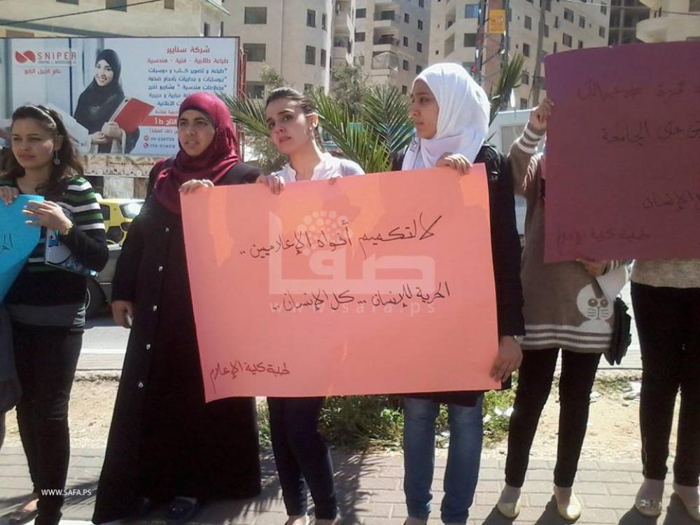 نظم عشرات الطلاب في كلية الإعلام بجامعة النجاح الوطنية بنابلس شمال الضفة الغربية ظهر الأربعاء وقفة تضامنية للمرة الثالثة احتجاجًا على استمرار الأجهزة الأمنية الفلسطينية باعتقال 3 طلاب. وطالب المشاركون في الورقة إدارة الجامعة بالتحرك الفوري لدى جهاز المخابرات العامة لإطلاق سراح زملائهم المحتجزين منذ أسبوع وهم عبد الله عصفور، وحمزة الصافي، وياسر جود الله. ورفع المشاركون لافتات طالبوا فيها بوقف الاعتقالات السياسية ووقف التعرض للطلاب وملاحقتهم واستدعائهم، كما نددوا بالحملة الأمنية التي قادتها الأجهزة الأمنية عقب تشييع رفات الشهيد محمد الحنبلي بنابلس. ودعا الطلاب لجان الحريات في الضفة بالتدخل لوضع حد للملاحقات الأمنية، لما تمثله من إرباك للعملية التعليمية ومستقبل الطلاب في ظل الحملة التي تشنها قوات الاحتلال ضد طلاب الجامعات. وكانت أجهزة أمن السلطة اعتقلت قبل نحو أسبوع 30 طالبًا من نشطاء الكتلة الإسلامية الذراع الطلابي لحركة حماس بجامعة النجاح، كما اعتقلت محامي وناشط في حقوق الإنسان ثم أفرجت عنه بعد ثلاثة أيام.