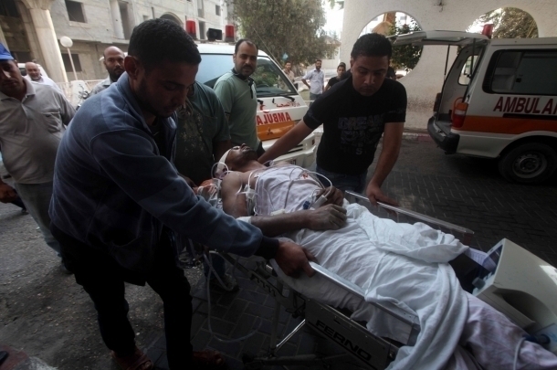 مسعفون ينقلون مصاب إلى المشفى