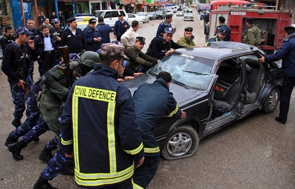 عناصر من الدفاع المدني والشرطة بالضفة خلال تدريب