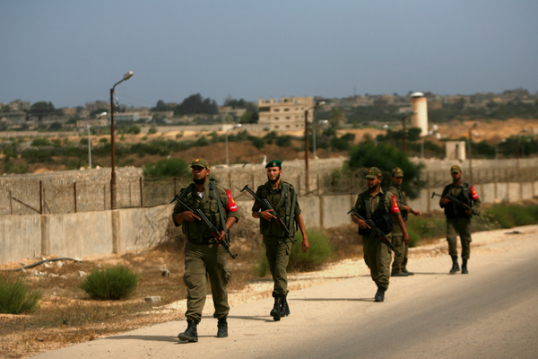 عناصر من الأحهزة الأمنية بالقطاع على الحدود مع مصر