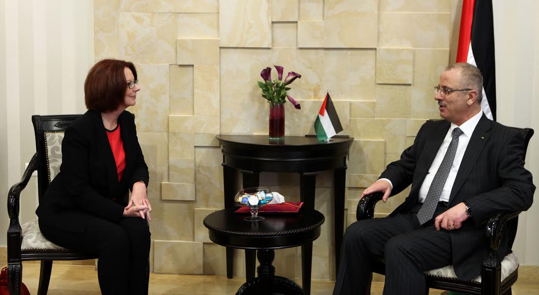 قال رئيس الوزراء بالضفة الغربية رامي الحمد الله إن التركيز على القطاع المهني والصناعي وتشجيع الطلاب للالتحاق بهما يساهم في تخفيض نسبة البطالة في المجتمع. ودعا الحمد الله خلال لقائه الأربعاء رئيسة وزراء استراليا الأسبق جوليا غيلارد لربط مخرجات قطاع التعليم مع متطلبات سوق العمل. وبحث الطرفان سبل دعم قطاع التعليم في فلسطين، وخاصة قطاع رياض الأطفال باعتباره الركيزة الأساسية لبناء الأجيال القادمة. وأطلع الحمد الله غيلارد على خطة حكومته للأعوام القادمة الهادفة للاستثمار في قطاع التعليم، وخاصة عن طريق تحسين طرق التعليم في المدارس وأيضا في الجامعات. كما أطلعها على الوضع السياسي القائم في ظل تعثر المفاوضات، وآخر التطورات على صعيد العملية السلمية، والتي تؤثر سلبا على الاستمرار قدما في بناء مؤسسات الدولة الفلسطينية.