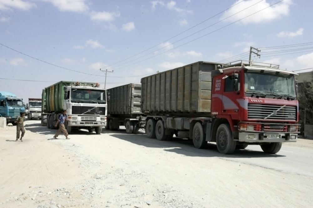 شاحنات قرب معبر كرم أبو سالم التجاري
