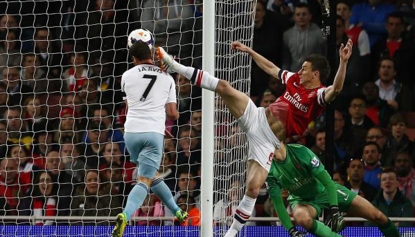 قلب نادي أرسنال تأخره بهدف إلى فوز ثمين على ضيفه نادي وست هام يونايتد بثلاثة أهداف مقابل هدف على ملعب الإمارات مساء الثلاثاء, ضمن الجولة الـ34 من الدوري الإنجليزي الممتاز. وافتتح الفريق الزائر التسجيل أولا عبر لاعب خط الوسط ماثيو غارفيس في الدقيقة 40، وقبل نهاية الشوط الأول بدقيقة تمكن المهاجم الألماني لوكاس بودولسكي من معادلة النتيجة لأرسنال. وفي الحصة الثانية تمكن "الغانزر" من التقدم بالنتيجة عندما أضاف المهاجم الفرنسي أوليفيه جيرو الهدف الثاني في الدقيقة 55. وعاد الألماني بودولسكي ليزور الشباك مرة أخرى بتسجيله الهدف الثالث لأرسنال في الدقيقة 78 . وبهذا الفوز رفع أرسنال رصيده إلى النقطة 67 في المركز الرابع، فيما توقف رصيد وست هام عند النقطة 37 في المركز الحادي عشر, بفارق الأهداف أمام كريستال بالاس.