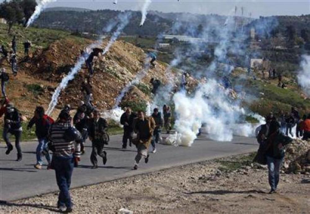 أصيب 10 شبان خلال مواجهات مع قوات الاحتلال الإسرائيلي في قرية قريوت جنوب مدينة نابلس شمال الضفة الغربية بعد ظهر الجمعة، خلال مسيرة احتجاج على قرار مصادرة مئات الدونمات من أراضي القرية. وقال أحد نشطاء المقاومة الشعبية لوكالة "صفا": إن الشبان أصيبوا بالرصاص المطاطي وبحالات اختناق خلال مواجهات الاحتجاجية على قرار الاحتلال مصادرة 1500 دونم من الأراضي المحاذية لمستوطنتي "شيلو" و"عيلي" المقامتين على أراضي القرية. وذكر أن الأهالي أدوا صلاة الجمعة في الأراضي المهددة بالمصادرة والتي شهدت دفع قوات الاحتلال عقب انتهاء الصلاة بتعزيزات عسكرية إليها وإطلاق الرصاص الحي في الهواء وقنابل الغاز المسيل للدموع لتفريق الأهالي. وأصدرت قوات الاحتلال قبل نحو شهر قرارا يقضي بوضع اليد بأوامر عسكرية على 800 دونم من أراضي القرية لإقامة حدائق ومتنزهات، فيما توقع نشطاء بمصادرة آلاف الدونمات الإضافية من الأراضي في حال نفذت المخطط الصادر عن ما تسمى بـ"الادارة المدنية".