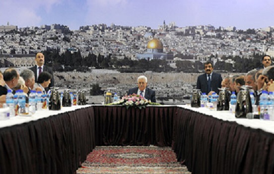 الرئيس عباس أثناء التوقيع على المعاهدات ال15