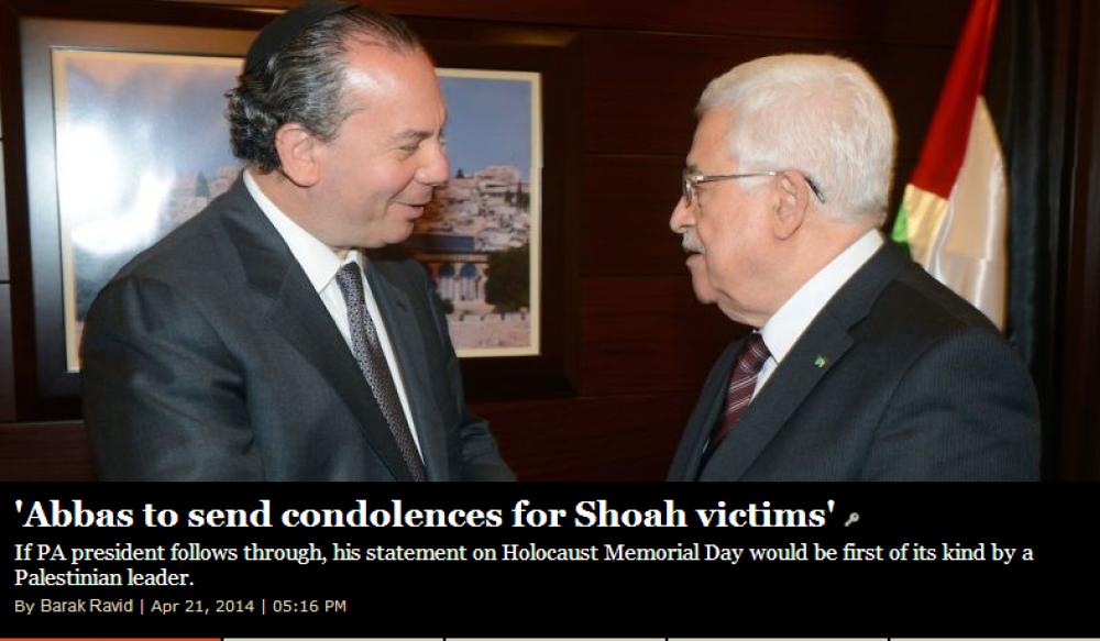 قال الحاخام مارك شنير نائب رئيس المؤتمر اليهودي العالمي ورئيس مؤسسة "التفاهم العرقي" الاثنين إنه من المتوقع أن يرسل الرئيس محمود عباس رسالة خاصة إلى "الشعب اليهودي" لتعزيته في ذكرى "المحرقة" الأسبوع المقبل. ونقلت صحيفة "هآرتس" العبرية عن شنير قوله بعد لقاءه الرئيس عباس في المقاطعة أمس إنه في حال تقديم الأخير تعازيه لليهود فإن ذلك يعتبر "سابقة هي الأولى من نوعها في تاريخ القيادة الفلسطينية". وأشار شنير إلى أن الرئيس عباس أكد خلال اللقاء أن المحرقة التي وقعت في الحرب العالمية الثانية على يد النازيين "أكبر مأساة في التاريخ الحديث"، على حد قوله. وأوضح أن اللقاء لم يكن بغرض الحديث في عملية التسوية أو قضايا سياسية، وإنما كان "للتقارب بين المسلمين واليهود" وهو محل اهتمام مؤسسة "التفاهم العرقي". وكان الرئيس عباس التقى شنير في مقر المقاطعة برام الله أمس عشية عيد الفصح اليهودي.
