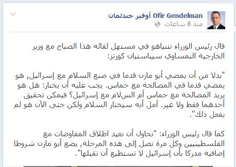 هاجمت الحكومة الإسرائيلية اتفاق المصالحة الذي وقعت عليه الفصائل الفلسطينية الأربعاء، ملوحةً أن "المرحلة المقبلة مليئة بالمفاجئات وأنه قد حان وقت التلويح بعصا العقوبات". فقد رأى وزير الخارجية الإسرائيلي أفيغدور ليبرمان في اتفاق السلطة مع حماس على أنه بمثابة المسمار الأخير في نعش عملية السلام. وقال ليبرمان في منشور على صفحته على الفيسبوك " على عباس أن يقرر إذا ما رغب فعلاً في السلام وفي حال كانت لديه الرغبة لذلك فعليه أن يحدد مع من سيحقق هذا السلام، فليس بالإمكان تحقيق السلام مع إسرائيل من جهة ومع حماس التي تدعو لتدمير إسرائيل من جهة أخرى". [img=042014/re_1398268914.jpg]1[/img] [img=042014/re_1398268915.jpg]2[/img] [img=042014/re_1398268916.jpg]3[/img] [img=042014/re_1398268917.jpg]4[/img] بدوره، قال وزير الاقتصاد الإسرائيلي نفتالي بينيت إن"اتفاق اليوم يدخل الشرق الأوسط في عهد جديد فقد تحولت السلطة الفلسطينية إلى أكبر منظمة إرهابية في العالم والتي لا تبعد سوى عشرون دقيقة عن تل أبيب". وأضاف بينيت "وكما أن الولايات المتحدة لا تتحاور مع حماس والجهاد الإسلامي والقاعدة؛ فعلى إسرائيل أن تكون واضحة بهذا الشأن فلا يمكن الحوار مع القتلة". ووصف بينيت حكومة الوحدة المقترحة أنها حكومة ائتلاف إرهابية، "فستواصل حماس قتل اليهود وسيواصل عباس مطالباته بالإفراج عنهم" ، مضيفًا: "من يعتقد أن عباس لا زال شريكاً فعليه إعادة حساباته". أما نائب وزير الخارجية الإسرائيلي "زئيف ألكين" فقد هاجم الاتفاق قائلاً "إن هذا التوقيع يثبت وحدة الأهداف الحقيقية بين مخربي حماس وفتح وهي تدمير الدولة اليهودية". وأضاف الكين أنه لا يجب أن نتفاجأ مما حصل فمن كان يرفض الاعتراف بيهودية الدولة ويدفع الرواتب للقتلة وجد نفسه أخيرا في مكانه الطبيعي من خلال عناقه لقتلة حماس". من جانبها، امتدحت رئيسة حزب ميرتس اليساري "زهافا جالؤون" الاتفاق ووصفته بالحيوي لـ"إسرائيل". وأضافت أن نتنياهو هو من دفع عباس إلى حضن حماس ويطلب منه اليوم الاختيار ما بين حماس و"إسرائيل"، الأمر الذي يناقض المصلحة الإسرائيلية. وأوضحت أنه طالما تغنت "إسرائيل" أن عباس لا يمثل جميع شعبه وفي اللحظة التي توحد شعبه وأصبح موقفه في المفاوضات مع إسرائيل ملزماً أيضاً لحماس تأتي هذه المعارضة للاتفاق". وكان رئيس الوزراء الإسرائيلي بنيامين نتنياهو قد صرح ظهر اليوم أن على عباس الاختيار بين المفاوضات مع "إسرائيل" أو مع حماس، قائلاً: "آمل ان يختار السلام مع إسرائيل مع أنه لم يفعل ذلك حتى الآن".