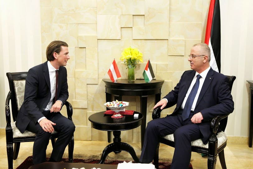 ناقش رئيس الحكومة الفلسطينية في رام الله رامي الحمد الله الأربعاء مع وزير خارجية النمسا سبستيان كيرز آخر تطورات العملية السياسية. وأطلع الحمد الله الضيف والوفد المرافق له على التحديات الاقتصادية التي تواجه الحكومة وخصوصًا في ظل القرار الإسرائيلي بحجب أموال الضرائب التي تجبيها لصالح السلطة، بالإضافة إلى التحديات التي تواجه الاقتصاد الفلسطيني جراء المعيقات الإسرائيلية التي تحول دون مقدرتها على الاستثمار في المناطق المسماة (ج)، واستغلال الموارد الموجودة فيها. وثمن الحمد الله دور النمسا في دعم حكومة رام الله، موضحًا أنها دعمت السلطة منذ تأسيسها بما يزيد عن 55 مليون يورو، ووقفت إلى جانب الفلسطينيين في العديد من المحافل الدولية وبشكل خاص في الأمم المتحدة، والمنظمات الدولية.