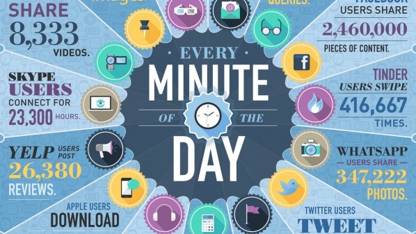 صدر تقرير جديد تحت عنوان “البيانات لا تنام 2.0″ DATA NERER SLEEPS 2.0 كشف عن الكم الهائل من البيانات التي يجري توليدها كل دقيقة “60 ثانية” عبر الإنترنت. وقامت شركة برمجيات الحاسب “دومو” Domo بنشر رسم بياني تناول أرقام العديد من المواقع العالمية وشبكات التواصل الاجتماعي، وتطبيقات التراسل الفوري. وبحسب أحدث الأرقام يبلغ عدد مستخدمي الإنترنت حول العالم 2.3 مليار نسمة، وبزيادة قدرها 14.3 في المئة مقارنة بالمدة بين عامي 2011 و 2013. وذكرت شركة “دومو” في رسمها البياني أن مستخدمي خدمات البريد الإلكتروني يرسلون في الدقيقة الواحدة حوالي 204 مليون رسالة إلكترونية، كما يستقبل محرك البحث “جوجل” 4 ملايين كلمة بحث، ويجري رفع 72 ساعة من الفيديو على موقع مشاركة الفيديو “يوتيوب”. وبالنسبة لشبكات التواصل الاجتماعي، وفي دقيقة واحدة فقط، يجري مشاركة 2,460,000 محتوى عبر “فسبوك”، ويغرد مستخدمو “تويتر” 277,000 مرة، وينشر مستخدمو “إنستاجرام” 216,000 صورة أو مقطع فيديو، ويقوم مستخدمو “فاين” بمشاركة 8,333 فيديو. هذا، وتظهر الأرقام فيما يتعلق بتطبيقات التراسل الفوري، أن مستخدمي “واتس آب” يشاركون في دقيقة واحدة 347,222 صورة، ويجري مستخدمو “سكايب” 23,300 ساعة اتصال. ويصنع متجر “أمازون” الإلكتروني في هذا الوقت 83,000 دولار من المبيعات عبر الإنترنت، كما يقوم مستخدمو شركة “آبل” بتنزيل 48,000 تطبيق.