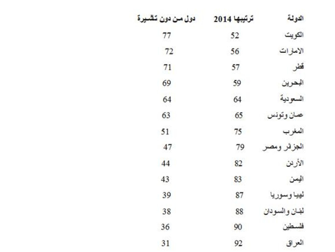 قال تقرير إحصائي لشركة استشارات عالمية إن أسوأ جوازات السفر في العالم هي الجواز الأفغاني والعراقي والفلسطيني على التوالي من حيث استطاعة حاملها الدخول إلى 173 دولة حول العالم. وأظهر تقرير لشركة "هنلي أند بارتنرز" الاستشارية العالمية المختصة بالجنسيات والإقامات وجوازات السفر والتأشيرات وتوابعها عالميًا أن جواز السفر الفلسطيني حل في المرتبة 90، فيما حل العراقي بالمرتبة 92، فيما جاء الأفغاني في المرتبة الأخيرة كأسوأ جواز سفر من حيث عدد الدول المسموح لحامله بزيارتها دون الحاجة إلى تأشيرة. وأشار التقرير إلى أن الجواز البريطاني والسويدي والفنلندي احتلوا الدرجة الأولى، لعدم حاجة حامله إلى تأشيرة حين يسافر إلى 173 دولة تمكن القيّمون على اللائحة من الحصول منها على معلومات من أصل 219 دولة، أو جهة تابعة لدولة ما في العالم. وكما في العام الماضي، احتلت الدرجة الثانية الدنمارك وألمانيا ولوكسمبورغ والولايات المتحدة، حيث يسافر حاملو جوازاتها إلى 172 من أصل 173 دولة. وحل جواز السفر الإسرائيلي في المرتبة الـ 20، حيث يُسمح لحامله دخول 144 دولة من دون تأشيرة، فيما الإيراني الذي كان ترتيبه 86 بنهايات اللائحة يسافر إلى 40 دولة من دونها، لكنه يظل أفضل من جوازات ليبيا وسوريا ولبنان والسودان، بحسب ما يظهر في الجدول. وما زال ترتيب الدول العربية كما كان تماماً في 2013، حيث الجواز الكويتي يتصدرها بإتاحته السفر إلى 77 دولة من دون تأشيرة، طبقاً لما يوضحه الجدول الخاص بها. [bimg=042014/re_1398521098.jpg]..[/bimg]