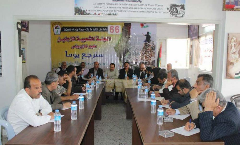 أُعلن في محافظة خان يونس جنوب قطاع غزة مساء السبت عن تشكيل اللجنة العليا لإحياء فعاليات النكبة الـ66 خلال اجتماع دعت له اللجنة الشعبية للاجئين التابعة لمنظمة التحرير بمشاركة اللجنة الشعبية للاجئين في حركة حماس والعديد من مؤسسات المجتمع المدني. وكانت عقدت مؤسسات المجتمع المدني وبعض الشخصيات الأكاديمية و الوجهاء و المخاتير اجتماع تأسيسي بمقر اللجنة الشعبية للاجئين للتشاور و تبادل الأفكار حول تنفيذ آلية التعاون المشترك للتذكير بالنكبة 66. و قبل الإعلان عن تشكيل اللجنة العليا، أكد رئيس اللجنة الشعبية للاجئين بالمنظمة مازن أبو زيد والذي ترأس الاجتماع على ضرورة أن تكون اللجنة لديها الخبرة والوقت اللازم لأنها ستعمل على مدار الساعة وسيقع على عاتقها الكثير من المسؤوليات. و شدد أبو زيد على ضرورة أن تعمل اللجنة بمهنية عالية و بعيدًا عن الحزبية، و تسعى إلى تسخير طاقات كل المؤسسات و الجهات المعنية من أجل تنفيذ سلسلة من النشاطات و الفعاليات المميزة لتكون عنوانًا ونموذجًا يحتذى به، مشيرًا إلى إنهاء الترتيبات اللازمة لعدد من الفعاليات المهمة للتذكير بالنكبة. بدوره، أكد كمال موسى عن اللجنة الشعبية للاجئين بحماس على ضرورة تكثيف الجهود و توحيدها من أجل إظهار الصورة الحقيقية للاجئين في مخيمات قطاع غزة، وإيصال رسائل قوية أن شعبنا الفلسطيني يتحد أمام أي خطر يواجهه. من جهته، أثنى ممثل جامعة الأقصى صبحي شبير على أداء اللجنة الشعبية للاجئين، مبديا استعداده الكامل للتعاون المشترك والعمل بجدية كاملة من أجل إنجاح الفعاليات والأنشطة ، متمنيًا على الجميع العمل بروح الفريق الواحد و تسخير كل الإمكانيات لتكون محافظة خان يونس مميزة عن باقي المحافظات في قطاع غزة. واتفق على أن يكون نعيم مطر نائب رئيس اللجنة الشعبية للاجئين رئيسا للجنة العليا لإحياء فعاليات النكبة الـ66 التي تم تشكيلها من 15 عضوًا من مختلف المؤسسات والاطياف السياسية . واجتمعت اللجنة العليا على هامش الاجتماع الموسع، واتفقت على عدد من الفعاليات و الأنشطة على أن يتم تقسيم العمل بين أعضاء اللجنة حسب تخصص كل عضو وبما يتلاءم و يتناسب مع إمكانياته وخبراته العلمية والعملية. وشكلت اللجنة لجانًا فرعية، أهمها اللجنة الإعلامية واللجنة الرياضية واللجنة السياسية واللجنة الثقافية إضافة إلى عدد من اللجان التي تتناسب مع الأنشطة التي تم التوافق عليها.