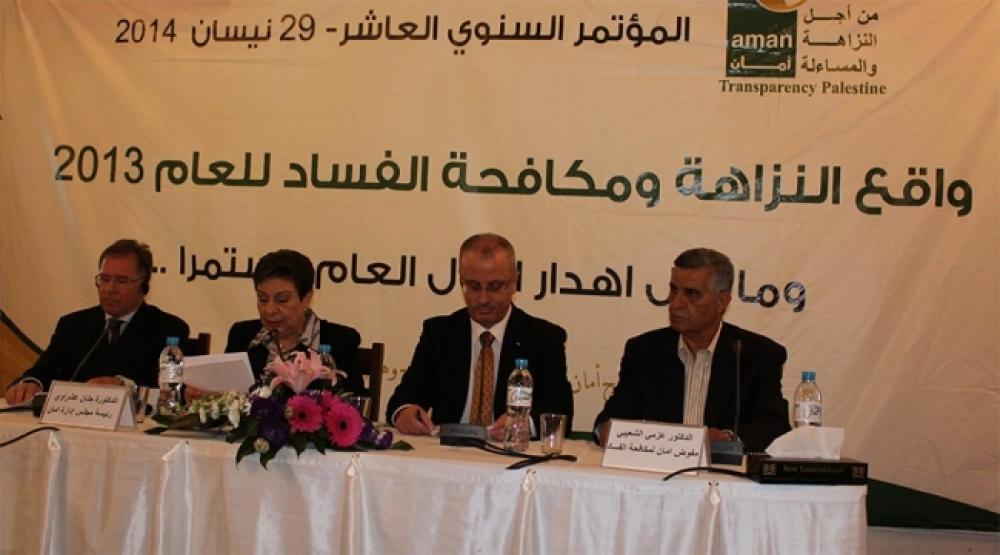 انتقد الائتلاف من أجل النزاهة والمساءلة (أمان) في تقريره السنوي الذي عرضه الثلاثاء، غياب وضع خطة وطنية شاملة لمحاربة الفساد وتعزز الفساد السياسي بفعل الانقسام الداخلي. ورصد التقرير الذي عرض خلال مؤتمر الائتلاف العاشر الذي عقد تحت شعار "واقع النزاهة ومكافحة الفساد في فلسطين" في مدينتي غزة ورام الله عبر تقنية الربط التلفزيوني (الفيديو كونفرس)، ضعف مفهوم الشفافية لعدد من المسئولين وحجب المعلومات عن المجتمع. وقال التقرير إن فئوية الأحزاب تضعف نظام النزاهة الوطني وأن قطاع العدالة أضعف منظومة المسائلة وسهل الافلات من العقاب، متناولا استمرار الاستثناءات كمجال لإهدار المال العام وعدم خضوع الأملاك الوقفية للمسائلة. ولفت التقرير إلى استمرار الكيان الإسرائيلي في سرقة المال الفلسطيني مستغلا غياب الشفافية، مبينا أن الامتناع عن إجراء الانتخابات في المجالس المحلية وضعف الرقابة الاجتماعية عليها عزز الفساد فيها. كما رصد التقرير استمرار ظاهرة الأغذية والأدوية الفاسدة، مؤكدا في الوقت ذاته أن القطاع الأمني ما زال مجالا واسعا للإنفاق بفعل الموازنة الضخمة الخاصة بالنفقات الأمنية التي تشكل قيمة فاتورة الرواتب معظمها. وسلط التقرير الضوء على القضايا الرئيسية التي تهم الشأن العام أهمها سلطة المياه الفلسطينية، واستخدام المزارعين للمبيدات الحشرية، والتحويلات الطبية، محاولاً تنبيه صناع القرار إلى هذه القضايا خلال العام الماضي. وعرض التقرير بعض جوانب القصور في المؤسسات "إذ لم يتغير الحال في سلطة المياه الفلسطينية مقارنة بالعام 2012 ولم توضع خطة لتطوير واقع المياه في فلسطين"، كما ولا تزال الخروقات في قائمة فيما يتعلق بالمركبات الحكومية واستخدامها من قبل موظفي الفئات العليا في شؤون خاصة. إضافة إلى ذلك تطرق التقرير إلى قضايا التحويلات الطبية التي وإن شهدت إصلاحات من قبل وزارة الصحة الفلسطينية، إلا أنه استمر العمل بالتحويلات الاستثنائية الصادرة عن مكتبي الرئيس ورئيس الوزراء علاوة على استمرار الاحتلال في عمليات سرقة أموال الصحة. ووفق التقرير فإنه تبين خلال استطلاعات الرأي أن أبرز أشكال الفساد هي الواسطة والمحسوبية والمحاباة خاصة فيما يتعلق بتقديم الخدمات العامة. وطالب التقرير بتفعيل الدور الرقابي في المؤسسات الصحية خاصة ملف العلاج بالخارج وحجم الأموال المنفقة على هذا الملف وقضايا الاستثناءات به . وذكر التقرير حالات متكررة لاستخدام المزارعين المبيدات الحشرية في المحاصيل الزراعة ودور وزارة الزراعة في تفعيل الرقابة عليهم موضحاً أن الوزارة أرجعت ذلك إلى ضعف الكوادر في المراقبة على المزارعين مما يؤثر سلباُ على المواطنين . وأكدت حنان عشراوي رئيسة مجلس إدارة (أمان) في الكلمة الافتتاحية لأعمال المؤتمر على ضرورة تفعيل الدور الرقابي والتنموي والتوعوي في جميع المؤسسات العامة والمنظمات الأهلية الفلسطينية لكي تتمتع بالاستقلالية والحيادية والمشروعية والعمل على المساهمة في محاربة الفساد. وقالت عشراوي إن " (أمان) وللعام ال13 تعمل على مواجهة التحديات بكل الأساليب وممارسة الدور الرقابي"، موضحة أنها عملت على إنشاء مبادرات شبابية وطلابية من أجل الحد من الفساد داخل المجتمع. وأضافت أن إصدار هذا التقرير سنوياً يعتبر هدف أساسي لـ"أمان" باعتباره مرآة للواقع الفلسطيني لمراقبة حالة المساءلة وتفعيل نظام التزام وطني لمكافحة الفساد، وهو مرهون بتوفر الإرادة السياسية الصادقة. وأوضح مفوض "أمان" لمكافحة الفساد عزمي الشعيبي أن التقرير السنوي للائتلاف اعتمد على المعلومات والبيانات الرسمية من السجلات والمقابلات مع ذوي الشأن لمعرفة مدى محاربة المؤسسات العامة والخاصة للفساد. يذكر أن ائتلاف (أمان) تأسس عام 2000 بمبادرة عدد من مؤسسات المجتمع المدني العاملة في مجال الديمقراطية وحقوق الإنسان والحكم الصالح، كحركة مجتمع مدني تسعى لمكافحة الفساد وتعزيز منظومة النزاهة والشفافية والمساءلة في المجتمع