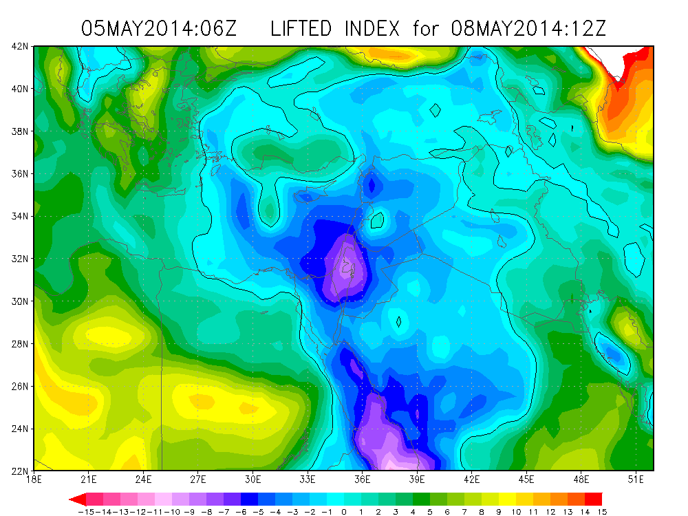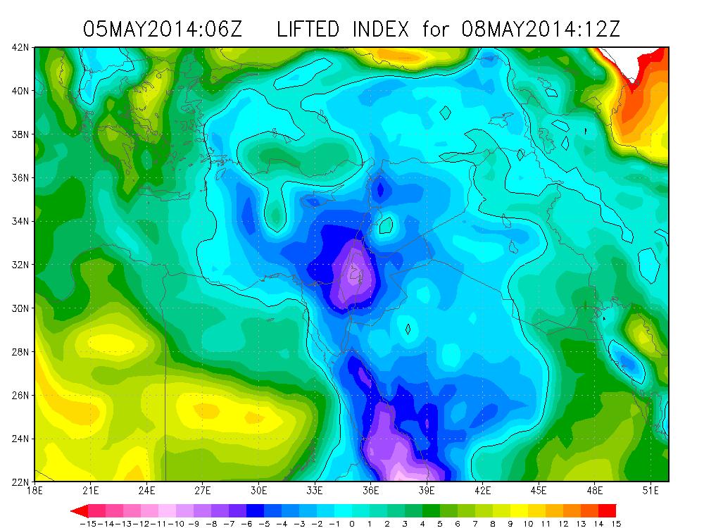 من المتوقع تلاشي الموجة الحارة الحالية التي تجتاح البلاد ابتداءً من ساعات بعد ظهر الغد الثلاثاء مع انخفاض ملموس على درجات الحرارة وخاصة المناطق الساحلية حيث تتأثر المنطقة بحالة عدم استقرار جوي ابتداء من ساعات نهار الأربعاء. وأشار الراصد الجوي عاصم عصيدة لوكالة "صفا" إلى تأثر المنطقة بمنخفض البحر الأحمر مصحوبًا بمنخفض علوي ضحل حيث من المتوقع بدء تساقط الأمطار الخفيفة ابتداءً من ساعات نهار الأربعاء على جنوب فلسطين على أن تمتد خلال الليل إلى باقي المناطق الفلسطينية. ويوم الخميس، توقع عصيدة استمرار تساقط الأمطار المصحوبة بالعواصف الرعدية على شتى المناطق الفلسطينية مع تركزها على جنوب ووسط فلسطين حيث حذر من خطر الفيضانات وبخاصة في مناطق النقب. كما توقع عصيدة استمرار تساقط الأمطار المتفرقة حتى ساعات بعد ظهر ومساء الجمعة مع ضعف الحالة بشكل تدريجي وانخفاض آخر على الحرارة. أما بخصوص توقعاته لكميات الهطول على شتى المناطق الفلسطينية، فقال عصيدة إنه يتوقع أن تتجاوز الكمية حاجز ال 30 ملم في مناطق جنوب ووسط فلسطين على أن تكون الحالة أضعف في مناطق أقصى شمال فلسطين. وعلى المدى البعيد، ذكر عصيدة أنه لا ترى في الأفق موجات حارة كالموجة الحالية وأن الـ10 أيام القادمة ستكون ربيعية لطيفة بوجه عام.