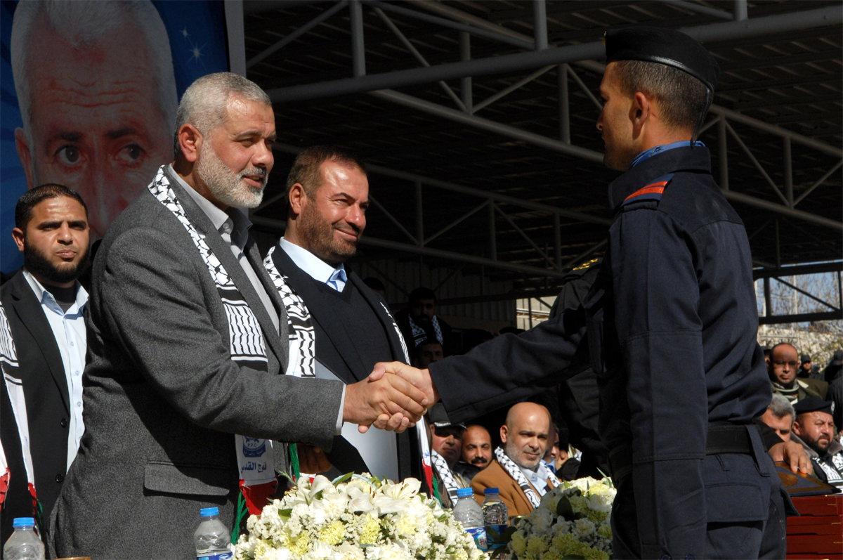 أكد رئيس الحكومة في غزة إسماعيل هنية الخميس، أن اتفاق المصالحة الوطنية لا بد أن يؤسس لمرحلة جديدة تصان فيها الحريات العامة وتحفظ فيها الكرامات وتصان فيها المقامات. وطالب هنية خلال حفل تخريج دفعة البكالوريوس الثالثة ودفعة ضباط الاختصاص الجامعيين في كلية الشرطة بوزارة الداخلية والأمن الوطني، بضرورة وقف كافة أشكال الاعتقال السياسي والملاحقة على أساس المقاومة ضد الاحتلال. وقال هنية "لا نقبل أن تنعم غزة بكل مقومات الحريات وتبقي الضفة الغربية تعاني". وبشأن الملف الأمني في المصالحة، قال هنية إنه تم الاتفاق على كل التفاصيل المتعلقة بالملف بالتواريخ بما يشمل العقيدة الوطنية الأمنية، وإعادة هيكلية الأجهزة الأمنية، وتجريم التعاون الأمني مع الاحتلال، وأن المقاومة مشروعة وسلاحها مصان. وأضاف "نؤكد أننا ملتزمون بما تم التوقيع عليه بشأن الملف الأمني، لكن ليس على قاعدة الطرد بل على قاعدة أن الأمن الوظيفي لرجل الأمن الوطني هو أمر مقدس لن يتم التخلي عنه". وأشار هنية إلى أنه بموجب تفاهمات المصالحة المتفق عليها فإن لجنة عربية برئاسة مصر ستتولى الإشراف على إعادة بناء الأجهزة الأمنية في كل من الضفة الغربية وقطاع غزة على حد سواء. ولفت إلى أن الحكومة في غزة "نجحت بأولوية إعادة الأمن للوطن والمواطن من خلال إنهاء ظواهر الفلتان الأمني عبر إعادة بناء المؤسسة وإعادة هيكليتها والدفع بالمخلصين للساحة الداخلية". وبين أن مهام وزارة الداخلية في غزة تتداخل بين حماية أمن المواطن والوطن وحماية ظهر المقاومة والتصدي لكل العابثين وحماية الحدود وفق مرحلة البناء والتحرير معا. وشدد على أنه بعد المضي في تحقيق المصالحة "فإننا لن نسمح أبدا بعودة الفلتان الأمني تحت أي ظرف كان ". وقال "إننا إذ نغادر موقع الحكومة من موقع الاقتدار سعيا لإنهاء الانقسام ومن أجل فلسطين فإننا لن نغادر موقع الرجولة والعزة وسنبقي الجنود الأوفياء لفلسطين وعيوننا على القدس والأراضي المحتلة عام 1948 والضفة الغربية والأسرى". واعتبر هنية أن حفل التخرج هو رد على يوم النكبة 66 "من خلال جيش وطني قوي وقيادة وطنية بايعت على الشهادة تقوم على التدريب والاستعداد والاستمرار في البناء والتمسك بالمقاومة والجهاد". وتابع قائلاً: إن "رسالتنا اليوم أن النكبة ستتحول إلى نكبة على المحتمل ونصر وعزة لفلسطين وأصحابها الشرعيين". من جهته، أعلن وزير الداخلية في غزة فتحي حماد عن تغيير اسم كلية الشرطة إلى "كلية الرباط الجامعية" لتكون شاملة في إعدادها لتخريج الضابط المسلم الملتزم والمحصن ضد التنسيق الأمني مهما كانت الضغوطات عليه. وأكد حماد حرص وزارة الداخلية على توسيع كلية الشرطة لتشمل كافة العلوم الأمنية والتكنولوجية والتربوية بما يضمن الإعداد التربوي الملتزم والعمل المهني الكامل. وأقيم حفل فوج الشهيد القائد أحمد الجعبري، على أرض ملعب الشهيد محمد الدرة بمدينة دير البلح وسط قطاع غزة. وشهد الحفل تخريج 250 طالباً من دفعتي البكالوريوس وضباط الاختصاص الجامعين. وتضمن حفل التخريج العديد من الفقرات المتنوعة من ضمنها عروض مشاة للطلبة الخرجين.