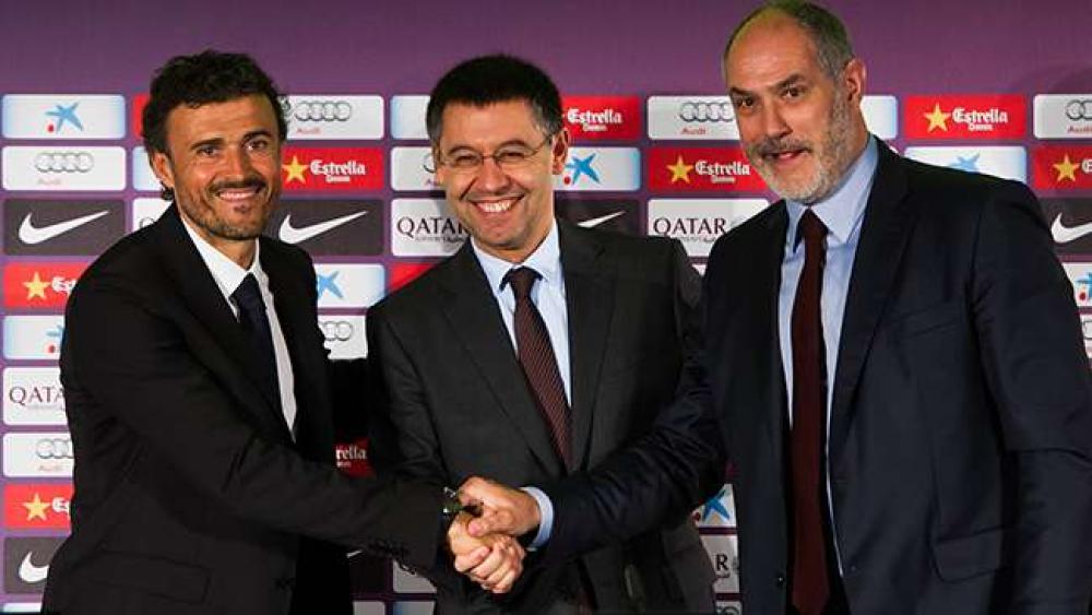إنريكي خلال تقديمه لوسائل الإعلام مديراً فنياً جديداً لبرشلونة