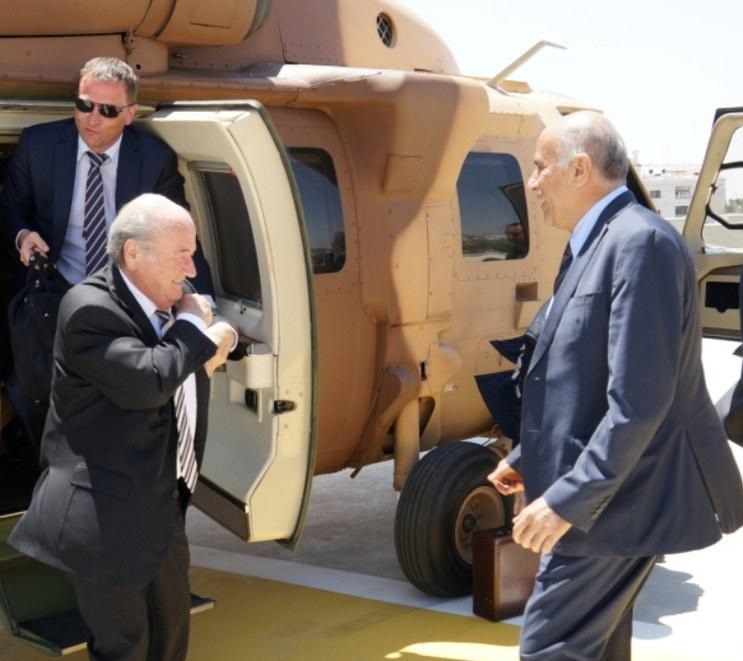 وصل رئيس الاتحاد الدولي لكرة القدم جوزيف بلاتر الاثنين الضفة الغربية المحتلة قادماً من المملكة الأردنية الهاشمية على متن مروحية أردنية، إلى جانب نائبه عن قارة آسيا الأمير علي بن الحسين، وعدد من كوادر "الفيفا". وكان رئيس الاتحاد الفلسطيني لكرة القدم جبريل الرجوب إلى جانب عدد من ممثلي الرئاسة الفلسطينية، وأعضاء اتحاد كرة القدم في استقبال بلاتر والأمير علي، في مقر المقاطعة بمدينة رام الله. وافتتح بلاتر زيارته بالوقوف دقيقة صمت على ضريح الرئيس الراحل الشهيد ياسر عرفات. ومن المنتظر أن يلتقي بلاتر والوفد المرافق له الرئيس محمود عباس، حيث سيعقد مؤتمراً صحفياً مشتركاً معه في المقاطعة برام الله.