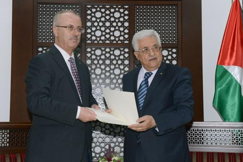 كلف الرئيس محمود عباس ظهر اليوم الخميس رامي الحمد الله، بتشـكيل حكومة الوفاق الوطني. وقال الرئيس عباس عقب كتاب التكليف: 'في هذه الرسالة تم تكليف الدكتور رامي الحمد الله من أجل تشكيل الحكومة الانتقالية الجديدة، واتمنى له النجاح والتوفيق في هذه المهمة الصعبة'. وبحلول مساء اليوم تنتهي المدة القانونية الأولى لتشكيل حكومة التوافق الوطني البالغة خمسة أسابيع، وتمدد المدة بحسب القانون الفلسطيني أسبوعين آخرين لاكتمال مشاورات تشكيل الحكومة وإعلانها. ومن المقرر –بحسب رئيس وفد حركة (فتح) للمصالحة عزام الأحمد- إعلان الرئيس محمود عباس حكومة التوافق من مقر المقاطعة برام الله حين استكمال المشاورات واختيار أسماء الوزراء. وأعلنت الحركتان الثلاثاء الماضي اكتمال مشاورات تشكيل حكومة التوافق بشكل شبه نهائي، على أن ترفع وجهة نظر الحركتين بالأسماء للرئيس عباس ليعطي قراره الأخير في الحكومة.