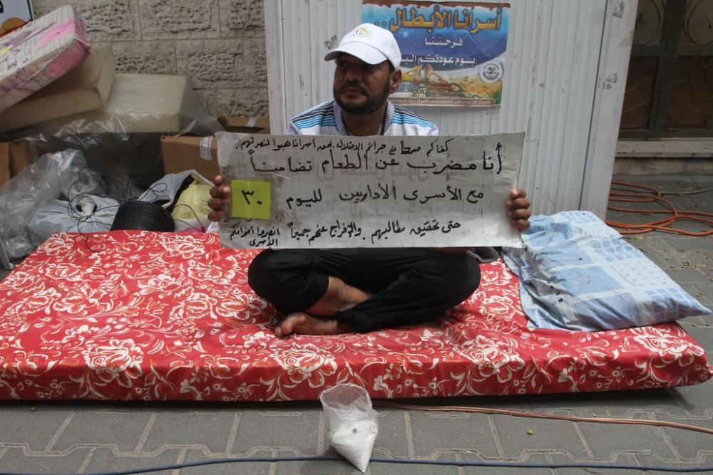أعلن عشرات الفتية والشبان الاثنين الإضراب عن الطعام ليوم واحد في قرية بيتين شمال مدينة رام الله وسط الضفة الغربية المحتلة، تضامنًا مع الأسرى الإداريين المضربين عن الطعام. وتجمع العشرات منهم أمام مقر الخدمات بالقرية وارتدوا الزي الأبيض مكتوب عليه "ماء + ملح =كرامة" وأعلنوا إضرابا عن الطعام منذ صباح اليوم. وقال الناشط أحمد جرابعه لوكالة "صفا": إن هذا الإضراب يأتي في إطار نصرة الأسرى المضربين والتضامن معهم، وغرس الثقافة الوطنية في نفوس الفتية والأطفال الصغار وإبقاء قضية الأسرى حية في قلوب الجيل الناشئ، بعد وصول عدد من الأسرى إلى مرحلة الخطر". وذكر أن هذا الإضراب نظم بدون تدخل مؤسسات رسمية أو شعبية وإنما جاء بمبادرة شبابية، في ظل حالة الخمول التي تحياها قضية الأسرى، ولرفع الصوت أمام الجهات الرسمية بالتحرك العاجل للتدخل في إنهاء معاناتهم. وعن موقف الحراك الشبابي من إلغاء وزارة الأسرى من الحكومة التوافقية المرتقبة قال جرابعة: "إن عشرات الأسرى أمضوا نصف حياتهم في سجون الاحتلال، ولم يرع حقوقهم سوى وزارة الأسرى ونحن لا نعترف بأي حكومة قادمة لا تضم هذه الوزارة".