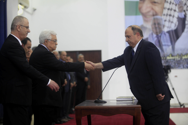 أدت حكومة التوافق الوطني ظهر الاثنين، اليمين القانونية أمام الرئيس محمود عباس في مقر الرئاسة بمدينة رام الله، تتويجا لاتفاق "إعلان الشاطئ" الذي أعلن في 23 أبريل الماضي لتنفيذ تفاهمات المصالحة وإنهاء الانقسام الداخلي. وضمت الحكومة الجديدة 17 وزيراً أدى منهم 13 اليمين القانونية، فيما منع الاحتلال الإسرائيلي 4 وزراء من قطاع غزة من التوجه إلى رام الله.