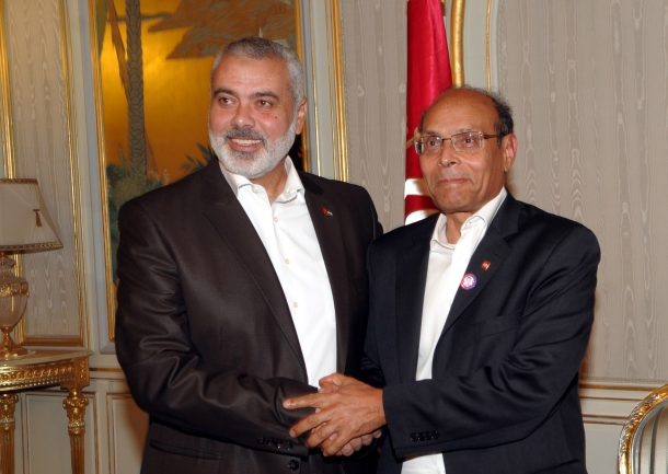هنأ الرئيس التونسي منصف المرزوقي الثلاثاء، رئيس الوزراء السابق إسماعيل هنية بتحقيق الوحدة الوطنية. وذكر بيان لحركة حماس أن المرزوقي أكد خلال اتصال هاتفي أجراه مع هنية، أن الخطوة المذكورة "إيجابية ومهمة للشعب الفلسطيني وللشعوب العربية ولحركات التحرر الوطني". وشدد المرزوقي على وقوف بلاده إلى جانب الشعب الفلسطيني ودعمها لضرورة استكمال أركان الوحدة الوطنية الفلسطينية. من جهته شكر هنية المرزوقي، مؤكدًا أن قرار الوحدة وطني نابع من مسئولية تاريخية. وشدد هنية على استكمال الوحدة الوطنية في كل الملفات حتى يتمكن الشعب الفلسطيني من التحرير والعودة.