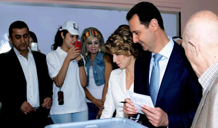 أعلن رئيس مجلس الشعب السوري جهاد اللحام فوز الرئيس بشار الأسد بفترة رئاسية ثالثة في الانتخابات الرئاسية التي شهدتها البلاد، وقال إنه حصل على أكثر من عشرة ملايين صوت وبنسبة مشاركة بلغت 88.7%. وكانت المحكمة الدستورية العليا في سوريا قد أعلنت مساء الأربعاء أن نسبة المشاركة في الانتخابات الرئاسية تجاوزت 73%. وقال المتحدث باسم المحكمة ماجد خضرة في بيان تلاه عبر التلفزيون الرسمي، إن عدد المشاركين في الانتخابات بلغ "11 مليونا و634 ألفا و412" من أصل 15 مليونا و840 ألفا و575 ناخبا داخل سوريا وخارجها، مشيرا إلى أن نسبة المشاركة بلغت 73.42%، وأن نسبة الأصوات الباطلة بلغت 3.8%". وفي وقت سابق أعلن رئيس اللجنة القضائية العليا للانتخابات هشام الشعار "الانتهاء من عملية فرز الأصوات وموافاة اللجنة القضائية العليا بمحاضر النتائج بعد فرز الأصوات". وذكر أن اللجنة قامت "بتنظيم محضر إجمالي ورفعته إلى المحكمة الدستورية العليا وفق ما نص عليه قانون الانتخاب". وبدأ إطلاق النار في الهواء في مناطق مختلفة من دمشق بعدما أعلن التلفزيون السوري قرب إعلان النتائج، وفي الوقت نفسه كان التلفزيون يبث نداء من الأسد عبر شريط إخباري عاجل جاء فيه "جنودنا البواسل وهم على خطوط النار يدافعون عن الوطن ويحاربون الإرهاب أولى بكل رصاصة تطلق في الهواء تعبيرا عن الابتهاج بأي مناسبة أو حدث". ورفض الثوار والمعارضة السورية الانتخابات بوصفها مهزلة قائلين إن منافسي الأسد غير المعروفين تقريبا لا يقدمان بديلا حقيقيا، وإنه لا يمكن إجراء انتخابات واعتبارها ذات مصداقية أثناء حرب أهلية. وجرت عملية التصويت في المناطق التي تسيطر عليها الحكومة بسوريا، ولكن لم تجر في مناطق كبيرة في شمال وشرق سوريا التي تسيطر عليها المعارضة السورية. وأدت الحرب إلى سقوط 160 ألف قتيل وما يقارب ثلاثة ملايين لاجئ، إضافة إلى نزوح عدد كبير داخل سوريا بحثا عن مناطق أكثر أمنا.