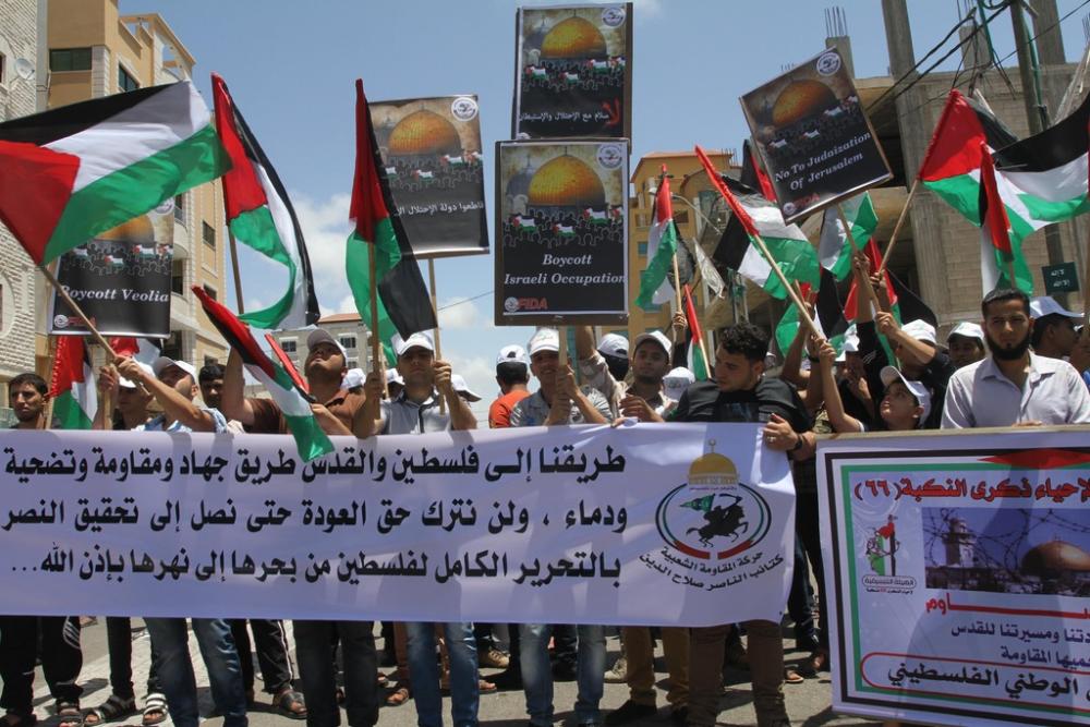 دعت شخصيات فلسطينية وفصائلية لوضع ملفي الأسرى والقدس على رأس سلم الأولويات الفلسطينية ودعم ومساندة الأسرى في السجون الاسرائيلية بإضرابهم عن الطعام الذي يخوضونه منذ 44 يومًا على التوالي. وشدد هؤلاء على هامش مشاركتهم في فعاليات المسيرة العالمية للقدس على ضرورة قطع العلاقات العربية الإسرائيلية، والضغط على الاحتلال الإسرائيلي لوقف انتهاكاته ضد المقدسيين. وشارك آلاف المواطنين بعد صلاة الجمعة بمسيرات حاشدة في القدس وقطاع غزة والضفة الغربية والأراضي المحتلة عام 1948، ونحو 42 دولة متجهة نحو القدس أو إلى أقرب نقطة إليها، ضمن فعاليات المسيرة العالمية نحو القدس. [title]صمود أسطوري[/title] وقال نائب رئيس المكتب السياسي لحركة حماس إسماعيل هنية إن الشعب الفلسطيني يؤكد اليوم أنه للأقصى والأسرى فداء، وسيواصل الطريق حتى تحرير المقدسات، "لأنه شعب لا يعرف الكلل والملل ومقاومة لم تلق عن كتفها السلاح". وأضاف هنية في كلمته خلال الوقفة أمام مقر الصليب الأحمر "شعبنا مرتبط بثوابت قضيته، ونحن قاتلنا بشرف مع الحكومة وقبلها وسنقاتل بعناد وإباء الى أن نحرر الأرض والانسان"، مشيدًا بصمود الأسرى الذين يديرون معركة شرسة مع الاحتلال. وشدد على أن الشعب الفلسطيني بالضفة وغزة والشتات لا ولن ينسى الأسرى ولن يخذلهم، موضحًا أن المقاومة التي حررتهم مرة، قادرة على أن تحررهم المرة تلو المرة. وأكد القيادي البارز في حماس أن حركته عقدت الوحدة على الثوابت والمقاومة والكرامة "لأنها تعرف أن وحدتنا سر قوتنا والقدس تتحرر بالشعب الموحد"، مبينًا أن حماس أخذت القرار عن وعي وإدراك ومسئولية كاملة. وجدد تمسك حركته ببرنامج المقاومة دون التفريط به تحت أي ظرف، لافتًا إلى أن طي صفحة الانقسام تحتاج إلى صبر وتعاون وتراكم لبناء جسور الثقة.. ولن نغادر الوطن والأمانة ولن نلقي البندقية وسنظل في موقع الخدمة لهذا الشعب". [title]قطع العلاقات[/title] بدوره قال الناطق باسم حركة الجهاد الاسلامي داوود شهاب إن ذكرى احتلال القدس هي ذكرى أليمة ولها وقعها في نفوس العرب والفلسطينيين، مبينًا أنها تتزامن مع استمرار حالة التهويد الاسرائيلي الذي يستهدف المسجد الأقصى ومكانته التاريخية. وشدد شهاب في تصريح لوكالة "صفا" على ضرورة قطع كل العلاقات العربية والإسلامية مع "إسرائيل" للعمل على عزلها دوليًا، والضغط عليها لوقف انتهاكاتها ضد المقدسيين والقدس. وحول رسائل المسيرة العالمية للقدس، أوضح أن أهم رسالة تتمثل برفض مبادرات التعايش والسلام العربية مع الاحتلال، محملاً "النظام الرسمي العربي مسئولية ضياع القدس". كما أعرب شهاب عن أسفه من خروج مسيرات في أكثر من 11 دولة أوروبية في الوقت الذي لم تخرج المسيرات سوى في 3 أو 4 دول عربية "ومن غير المقبول أن نرى أمراء وقيادات دول يمدون أيديهم للاحتلال في الوقت الذي يهود فيه الأقصى". أما القيادي في الجهة الديمقراطية طلال أبو ظريفة فأكد أن مدينة القدس ستبقى أحد الثوابت الذي لا يمكن لأي فلسطيني التنازل عنها، داعيا قيادة السلطة لدعم صمود المقدسيين ودعوة المجتمع الدولي لوقف الممارسات الاسرائيلية ضدهم في القدس. وطالب في حديثه لمراسل "صفا" بضرورة مساءلة الكيان الإسرائيلي على كافة الإجراءات والانتهاكات ضد القدس والأسرى، والتوجه لمحكمة الجنايات الدولية لإجبارها على وقف ممارساتها. [title]جرائم الاحتلال[/title] من جهته، ذكر رئيس الهيئة الشعبية للدفاع عن القدس النائب أحمد أبو حلبية أن مسيرات القدس العالمية تأتي دعمًا للقدس والأقصى في الوقت الذي يتعرضن فيه لأبشع أنواع الجرائم من قبل الاحتلال. وأشار أبو حلبية في كلمته أمام مقر الصليب الأحمر أن المسيرات ستتواصل اليوم وغدًا السبت في أكثر من 45 دولة بجميع أنحاء العالم، وتشمل الاعتصام أمام السفارات الاسرائيلية في تلك الدول. في ذات السياق، طالب جمال أبو نحل في كلمة القوى الوطنية والإسلامية بالمضي قدمًا على درب الشهداء وعودة القدس، مشددا على أن حقوق شعبنا لن تسقط بمرور السنين إنما 