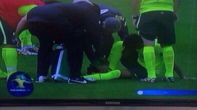 سقطت قلوب مشجعي منتخب البرازيل مساء الاثنين وهم يرون نجم "السامبا" الذي يضعون عليه آمال كبيرة، نيمار يسقط على أرضية الملعب، حيث كان منتخب البرازيل يجري تدريبه استعداداً لمباراته الافتتاحية في كأس العالم أمام كرواتيا الخميس المقبل. ونشرت صحيفة "ميرور" البريطانية أن اللاعب تعرض للالتواء في كاحل قدمه خلال المران، وسقط أرضاً الأمر الذي جعل المدير الفني لمنتخب "السامبا" فيليب سكولاري يهرع نحوه، برفقة أعضاء الجهاز الطبي للاطمئنان عليه. وبعد دقائق من الراحة، استطاع نجم فريق برشلونة الإسباني الوقوف على قدمه مجدداً، بل والجري أيضاً. وأشارت الصحيفة إلى أن صورة إصابة اللاعب تم تداولها سريعاً عبر موقع التواصل الاجتماعي "تويتر"، مضيفةً أن هذه الإصابة لن تعوق النجم البرازيلي عن المشاركة في المباراة الافتتاحية أمام منتخب كرواتيا. وكانت قائمة الإصابات قبل المونديال طالت العديد من نجوم المنتخبات المشاركة، على رأسهم الكولومبي راداميل فالكاو، والفرنسي فرانك ريبيري، والألماني ماركو رويس، وغيرهم. يذكر أن البرازيل تلعب في المجموعة الأولى بكأس العالم مع منتخبات الكاميرون، والمكسيك، وكرواتيا.