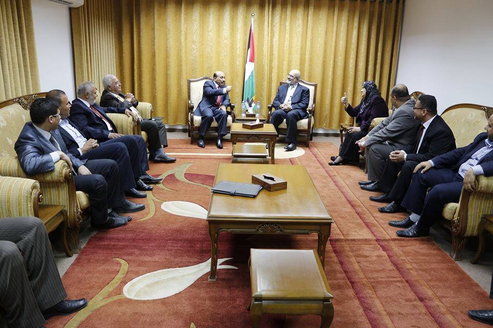 تسلّم وزير الأشغال العامة والإسكان مفيد الحساينة ظهر الأربعاء مقر رئاسة مجلس الوزراء وسط مدينة غزة. وشارك في مراسم التسليم كلاً من نائب رئيس الوزراء السابق في غزة زياد الظاظا وأمين عام مجلس الوزراء السابق عبد السلام صيام، والناطق باسم الحكومة السابقة إيهاب الغصين، بالإضافة إلى وزراء حكومة التوافق الأربعة من غزة. وشكر الحساينة حكومة غزة السابقة ورئيس وزرائها إسماعيل هنية ونائبه الظاظا على الاستقبال لوزراء حكومة الوفاق، مبينًا أن مقر رئاسة الوزراء أحد المقرات المهمة للتواصل مع رئاسة الوزراء. وقال خلال مؤتمر صحفي عقد عقب التسليم: "وقعنا واستلمنا مقر مجلس الوزراء بغزة، بتكليف من رئيس الحكومة رامي الحمد الله". وأكد أن الرئيس محمود عباس يتواصل بشكل يومي مع أصدقاء الشعب الفلسطيني في الخارج لإنهاء أزمة تنقل وزراء غزة إلى الضفة والعكس، موضحًا أنه من حق الوزراء التنقل بين الضفة والقطاع. وأضاف الحساينة: "تحدثنا مع ممثلي الاتحاد الأوروبي والأمم المتحدة الذين التقيناهم بخصوص هذه القضية، لأنها يجب أن تحل ولا يجوز إبعاد أي وزير عن الضفة أو غزة". وبخصوص فتح معابر قطاع غزة أوضح الحساينة أن الحمد الله يتابع قضايا فتح المعابر، لافتًا إلى أنها على رأس أولويات الحكومة الحالية والمباحثات تسير بشكل ايجابي حتى اللحظة. وجدد وزير الأشغال والإسكان تأكيده أن غزة ستشهد حالة من الإعمار خلال الفترة المقبلة، واستكمال جميع المشاريع الدولية فيها. وفيما يتعلق بالموظفين شدد على أن مجلس الوزراء يناقش هذا الموضوع بكل جدية والأمور تسير بشكل ايجابي، موضحا أنه لن يكون هناك تمييز بين موظفي حكومتي غزة والضفة السابقتين. وتابع: "جميع موظفي الحكومات السابقة الآن موظفي حكومة الوفاق الوطني ونتعامل معهم دون تمييز وسيتم استدعاء موظفين آخرين من الحكومة السابقة للعمل خلال الفترة المقبلة وإنهاء كل مظاهر الانقسام".