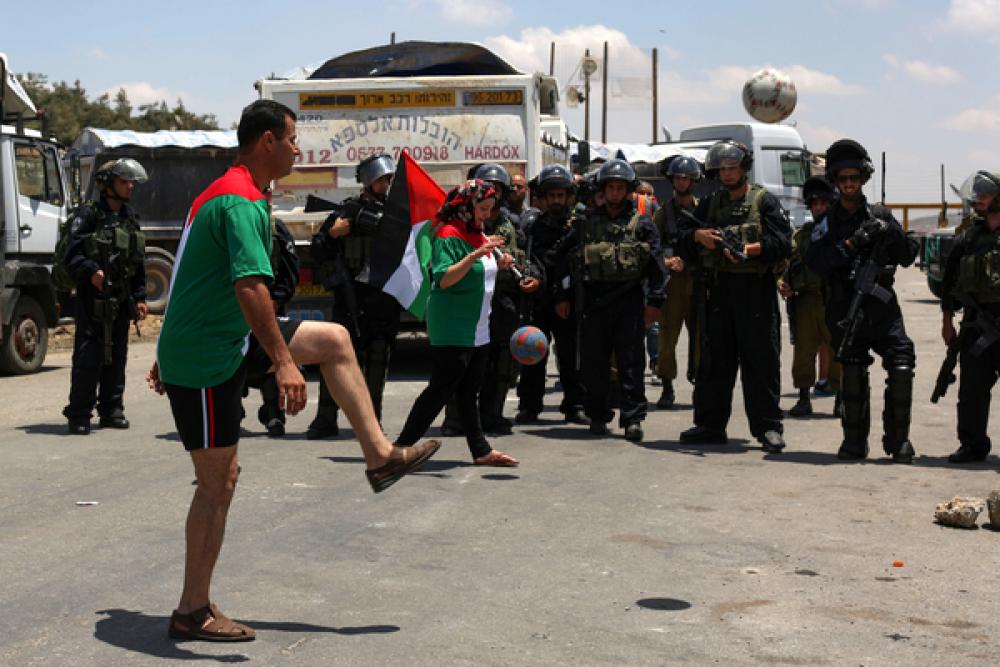 قمع جيش الاحتلال الإسرائيلي ظهر الأربعاء المشاركين في مباراة كرة قدم أقامها مجموعة من نشطاء لجان المقاومة الشعبية أمام سجن (عوفر) المركزي تضامنًا مع الأسرى الفلسطينيين المضربين عن الطعام منذ ما يزيد عن شهر ونصف. وأوضح المشاركون في المباراة في بيان أصدروه وصل وكالة "صفا" نسخة عنه الأربعاء أن جيش الاحتلال استخدم قنابل الصوت والغاز والمياه العادمة في قمع المشاركين في المباراة والذين جاءوا من مناطق مختلفة. وقالوا: إنهم "انقسموا إلى فريقين فريق يلبس قميص المنتخب الفلسطيني، وآخر يلبس قمصان كُتب عليها مي+ وملح= كرامة، وأحضروا الكرات، ومن ثم بدأوا بلعب كرة القدم أمام السجن وما هي إلا لحظات حتى اقتحمت قوة من حرس الحدود والجيش الإسرائيلي ملعبهم، مستخدمة العنف ضد اللاعبين". وبينوا أن رسالتهم التضامنية مع الأسرى من خلال استخدام كرة القدم هدفت إلى لفت أنظار العالم إلى المعاناة الفلسطينية، حيث يقبع نحو خمسة آلاف فلسطيني في الأسر نحو 200 منهم شبه موتى يخوضون معركة الأمعاء الخاوية لليوم الـ49 خاصة في الوقت الذي ستتجه أنظار العالم للاستمتاع بمشاهدة مونديال البرازيل. وقال النشطاء في بيانهم: إن "من حق الفلسطينيين أن يستمتعوا بمشاهدة المونديال ولكن كيف يكون لهم ذلك وإخوتهم وأحبتهم يموتون لهذا كانت الرسالة إلى كافة محبي كرة القدم أن يتذكروا إخوتهم في الإنسانية الفلسطينيين الأسرى المضربين عن الطعام وأن يقوم كل بطريقته بالضغط على إسرائيل للاستجابة لمطالب الأسرى بصورة خاصة ومنح الفلسطينيين حقوقهم بصورة عامة".