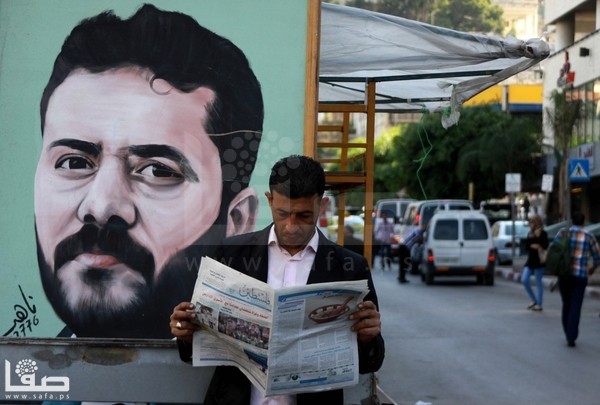 مواطن يقرأ صحيفة فلسطين بالضفة