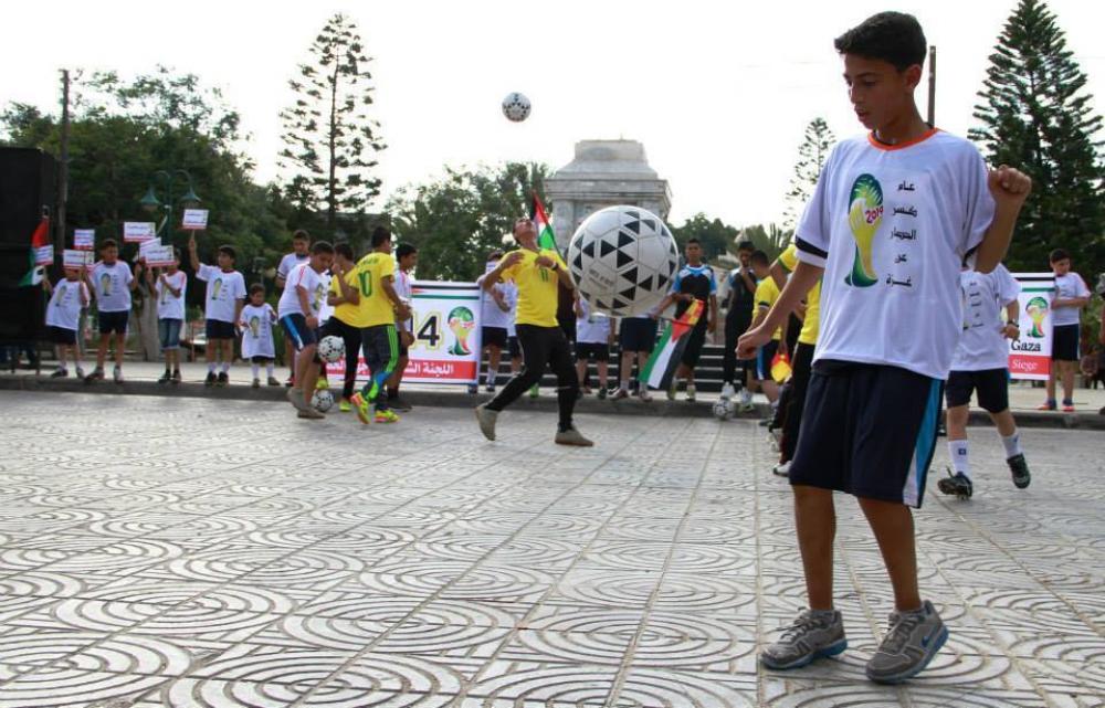 افتتح شبان في غزة مونديالا رمزيا لكرة القدم يحاكي كأس العالم المقرر افتتاحه مساء الخميس في البرازيل، وذلك للمطالبة بلفت الأنظار الدولي لإنهاء الحصار الإسرائيلي المفروض على القطاع. ونظم الحدث اللجنة الشعبية لمواجهة الحصار تحت عنوان (إسرائيل تحاصرنا وكأس العالم نافذتنا) وذلك ضمن إطلاق فعاليات كأس العالم في قطاع غزة. وافتتح المونديال شبان مثلا فريقي البرازيل وكرواتيا وهم يلبسون زياً يحمل شعار المونديال 2014 وشعار رفع الحصار عن غزة". واعتبر المشاركون الذين يعيشون في غزة في ظل معدلات بطالة وفقر مرتفعة في صفوفهم، في هذه الأنشطة فرصة لإيصال رسالة التعاطف والتأييد من العالم لهم. ولعب المشاركون بكرة القدم في ساحة الجندي المجهول غرب مدينة غزة بهدف إيصال رسالة كسر الحصار عن غزة للدول المشاركة في كأس العالم والملايين من محبي كرة القدم ومشجعيها في العالم. وقال محمد الخضري أحد الشباب المشاركين في المباراة خلال مؤتمر صحفي عقده باللغتين العربية والانجليزية "الاحتلال الإسرائيلي يحاصرنا في غزة ويريد أن يعزلنا عن العالم لكننا اليوم نشعر بالقرب من العالم ونحن نتابع كأس العالم والمونديال". وأكد الخضري أن كأس العالم نافذة فلسطين، داعياً للوقوف إلى جانب شعبه ومساعدتهم لإنهاء حصاره وعزله "إذ أننا في غزة محاصرون في كل شيء حتى في أحلامنا بأن نكون أحرارا مثلكم ونستمتع كباقي شعوب العالم". ودعا الخضري العالم للوقوف إلى جانبه وأن يهتفوا بأعلى صوتهم في المونديال لإنهاء الحصار الإسرائيلي عن غزة ومنحهم الحرية، ومساعدتهم ليكن عام 2014 عام كسر الحصار الإسرائيلي عن غزة والحرية لفلسطين.