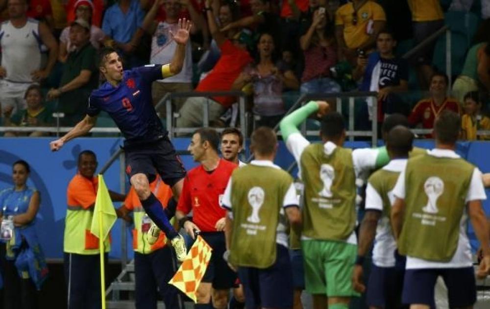 أصبح روبن فان بيرسي نجم هجوم مانشستر يونايتد الإنجليزي والمنتخب الهولندي أول لاعب في هولندا يحرز أهداف في ثلاث مناسبات في كأس العام. وأكدت شبكة أوبتا سبورتس المختصة بالإحصائيات أن فان بيرسي دخل التاريخ بهدف التعادل الرائع الذي أحرزه في مرمى منتخب إسبانيا، حيث أصبح أول لاعب في تاريخ بلاده يسجل في 3 كؤوس عالم. وكان هدف فان بيرسي الأول في إسبانيا هو التاسع في آخر تسع مباريات له مع المنتخب الهولندي. ومن الجدير بالذكر أن هولندا فازت بخماسية مقابل هدف واحد على إسبانيا مساء الجمعة في إطار منافسات المجموعة الثانية من المونديال.