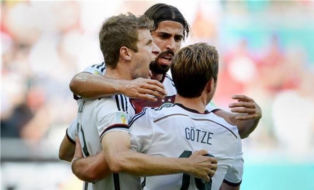استهل المنتخب الألماني مشواره في كأس العالم 2014 بفوز كبير على نظيره البرتغالي برباعية نظيفة في مباراة لحساب المجموعة السابعة التي تضم أيضاً غانا والولايات المتحدة الأمريكية. وشهد اللقاء الكثير من الأحداث، إضافة إلى النتيجة الألمانية الكبيرة، فشهد طرداً للمدافع بيبي في الشوط الأول، كما خرج كلاً من فابيو كوينتراو، وماتس هاملز من البرتغال، والمانيا على الترتيب بعد تعرضهما للإصابة في الشوط الثاني. وجاءت أهداف المواجهة موزعة على 3 في الشوط الأول وهدف واحد في الشوط الثاني، فسجل توماس مولر ثلاثية "هاتريك" في الدقيقة العاشرة من ركلة جزاء، وفي الوقت بدل الضائع من ذات الشوط، وأضاف الهدف الرابع بالدقيقة 78، في حين سجل مدافع بوروسيا دورتموند ماتس هاملز الهدف الثاني في الدقيقة 32 من رأسية بكرة مرفوعة من ركلة ركنية.