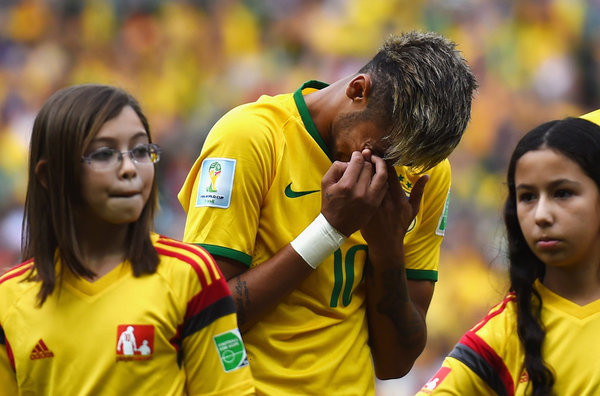 لم يستطع مهاجم منتخب البرازيل "نيمار" أن يتمالك نفسه قبل انطلاق مباراة منتخب بلاده مع المكسيك، والتي انتهت بالتعادل السلبي ضمن منافسات نهائيات كأس العالم المقامة حالياً بالبرازيل. وبدا التأثر واضحاً على النجم البرازيلي خلال عزف النشيد الوطني لبلاده، حيث ذرف الدموع أثناء وبعد عزف السلام، خاصة أمام الحشد الكبير للجمهور البرازيلي الذي حضر الملعب لدعم نجوم السامبا أمام المكسيك. المباراة التي لعبت لحساب الجولة الثانية من المجموعة الأولى شهدت أيضاً تألق الحارس المكسيكي أوتشوا في وجه نيمار وزملائه، إذ من الواضح أن نجم برشلونة الإسباني نيمار كان يشعر أيضاً بالضغط قبل أن تنطلق المباراة، فكانت دموعه العاطفية المتأثرة بالأجواء المحيطة من جمهور البرازيل. يذكر أن المباراة شهدت تعادلاً سلبياً بين الطرفين، علماً أن البرازيل ستواجه الكاميرون في المباراة المقبلة في كأس العالم والأخيرة لهما في الدور الأول.