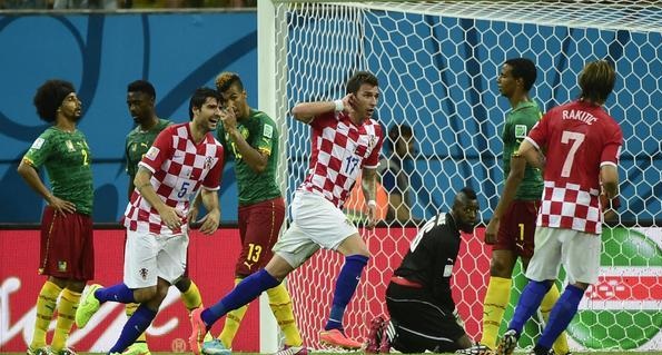 حقق المنتخب الكرواتي فوزاً سهلاً على نظيره الكاميروني برباعية نظيفة في الجولة الثانية من المجموعة الأولى لبطولة كأس العالم بالبرازيل، على ملعب "أرينا أمازونيا" في ماناوس صباح الخميس، ليحافظ الكروات على أملهم في التأهل للدور الثاني، فيما يحزم لاعبو الكاميرون أمتعتهم بعدما ودعوا المنافسة رسمياً. وخرج المنتخب الكاميروني من البطولة بعد أن ألحقت به كرواتيا الخسارة الثانية بعد الهزيمة بهدف نظيف من المكسيك في الجولة الأولى. واحتلت كرواتيا المركز الثالث برصيد 3 نقاط، خلف البرازيل المتصدرة بأربعة نقاط، والمكسيك الثانية بفارق الأهداف خلف البرازيل. وستواجه الكاميرون في الجولة الأخيرة المنتخب البرازيلي يوم الاثنين المقبل، بينما ستلعب كرواتيا مباراة مصيرية من أجل مقعد في ثمن النهائي ضد المكسيك. وتقدم إيفيكا أوليش لكرواتيا في الدقيقة 11، وأضاف إيفان بيريسيتتش الهدف الثاني بالدقيقة 48، وجاء الهدف الثالث في الدقيقة 61 عن طريق ماريو ماندزوكيتش، الذي عاد وأضاف رابع الأهداف بالدقيقة 73. وشهدت المباراة تعرض أليكسندر سونج لاعب الكاميرون للطرد المباشر لتداخله العنيف على ماريو ماندوزكيتش بدون كرة.