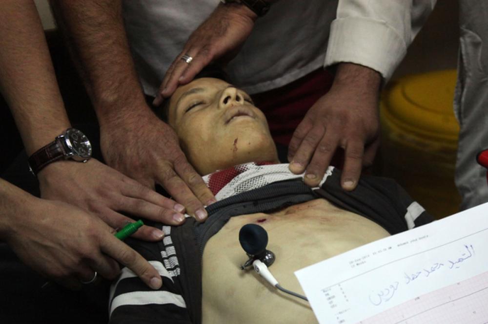 استشهد الطفل محمد جهاد دودين (14عامًا) برصاص الاحتلال الإسرائيلي الحيّ في المواجهات التي اندلعت معه بمدينة دورا جنوب محافظة الخليل بالضّفة الغربية، في الوقت الذي شنّ فيه آلاف الجنود مداهمات موسّعة في دورا، وعمليات اعتقال في مختلف أنحاء الخليل. وأكّد شهود عيان من دورا لوكالة "صفا" أنّ الطفل دودين ارتقى برصاصة في الصّدر أطلقها جنود الاحتلال أثناء محاولة مجموعة من المواطنين التّصدي لقوات الاحتلال التي داهمت الأحياء السكنية، مشيرة إلى أنّ جنود الاحتلال ردّوا بإطلاق النار على عمليات الرّشق بالحجارة التي تعرّضوا لها. وجرى نقل الطفل إلى مستشفى الخليل الحكومي مصابًا بجراح خطرة، لكنّ الجهود الطبية لم تفلح بإنقاذ حياته. [title]مداهمة دورا [/title]كما أصيب شابان بجراح طفيفة في المواجهات بدورا، أحدهما بسبب ارتطام قنبلة غازية في رأسه، وأوضحت المصادر أنّ عدّة آليات عسكرية داهمت وسط المدينة، برفقة وحدات المشاة، وبدأت إطلاق القنابل الغازية والصّوتية. وفي منطقة سنجر بدورا، نفّذت قوّة عسكرية أخرى من جيش الاحتلال عملية تفجير للمحال التجارية، وجرى مداهمتها وإجراء عملية تفتيش داخلها. ويأتي هذا التطور، بعد ساعات من تنفيذ طائرات مروحية تابعة لجيش الاحتلال مساء الخميس عمليات إنزال في عدد من الجبال والأدوية بمحيط مدينة دورا جنوب غرب الخليل. وأفاد شهود عيان لوكالة "صفا" أنّ (4 طائرات) مروحية أنزلت مئات الجنود في معسكر المجنونة جنوب دورا، وفي مناطق الجلاجل وواد الصعبية والأودية الغربية لدورا، والأودية الشمالية لدورا. وفي ذات الوقت، داهمت قوّات الاحتلال بلدة دير سامت وقرية المجد وسكا وعدد من القرى الغربية لدورا، وبدأت عمليات تمشيط فيها. كما انتشر عشرات من جنود الاحتلال في منطقة المقفة جنوب دورا، فيما داهم جنود الاحتلال عددا من الأحياء السكنية في دورا. وأغلق أغلق جنود الاحتلال مدخل دورا القريب من مفترق الفوار، إضافة إلى إغلاق مدخل مخيم الفوار المطلّ على الشارع الالتفافي، وسط انتشار لجنود الاحتلال في المفترق. [title]اعتقالات [/title]وأفادت مصادر محلية لوكالة "صفا" أنّ قوّات الاحتلال اعتقلت المحاضر في جامعة الخليل إياد الصّاحب بعد مداهمة منزله في حارة الشيخ، فيما اعتقلت المحرر يوسف الصرصور بعد مداهمة منزله في حيّ نمرة، إضافة إلى اعتقال المحرر طالب أبو سنينة بعد مداهمة منزله واستدعائه للمقابلة. وفي مدينة دورا، اعتقلت قوّات الاحتلال الأسير المحرر أيوب العواودة بعد مداهمة منزله وتفتيشه ونقلته إلى جهة مجهولة. أمّا في مدينة يطّا جنوب الخليل، اعتقل جنود الاحتلال الشيخ فريد الجمل إمام مسجد السلام في يطّا، بعد مداهمة منزله وتفتيشه وهو مريض يعاني عدّة أمراض مزمنة. كما اعتقلوا الشيخ عادل إدريس بعد مداهمة منزله في منطقة دائرة السير بمدينة الخليل. وفي جبل جوهر بمدينة الخليل، أصيب عدد من المواطنين بحالات اختناق في المواجهات التي اندلعت مع جنود الاحتلال، بعد مداهمة قوّة عسكرية مؤلّفة من عدة جيبات عسكرية محيط أحد الأفراح، واشتباك المواطنين معها. [title]اغلاق جمعيات [/title]وعلى صعيد آخر، أغلقت قوّات الاحتلال مقري الجمعية الخيرية الإسلامية بدورا والخليل، بعد مداهمتهما بقوّات كبيرة، ومصادرة ملفات وأوراق خاصّة بالجمعية، وأغلقوا أبواب مكاتب الجمعيتين وجرى تشميعهما، وإلصاق قرار الاغلاق بهما. وأغلقت مقر جمعية الشّبان المسلمين في مدينة الخليل، في الوقت الذي داهمت فيه مدرسة أبو حنك للإناث بشارع السلام في مدينة الخليل، إضافة إلى مداهمة مقرّ صحيفة أخبار الخليل في دورا، وداهمت مبنى الجمعية الخيرية الإسلامية في بلدة الشيوخ شرق محافظة الخليل، وأجرت عمليات تفتيش فيها.