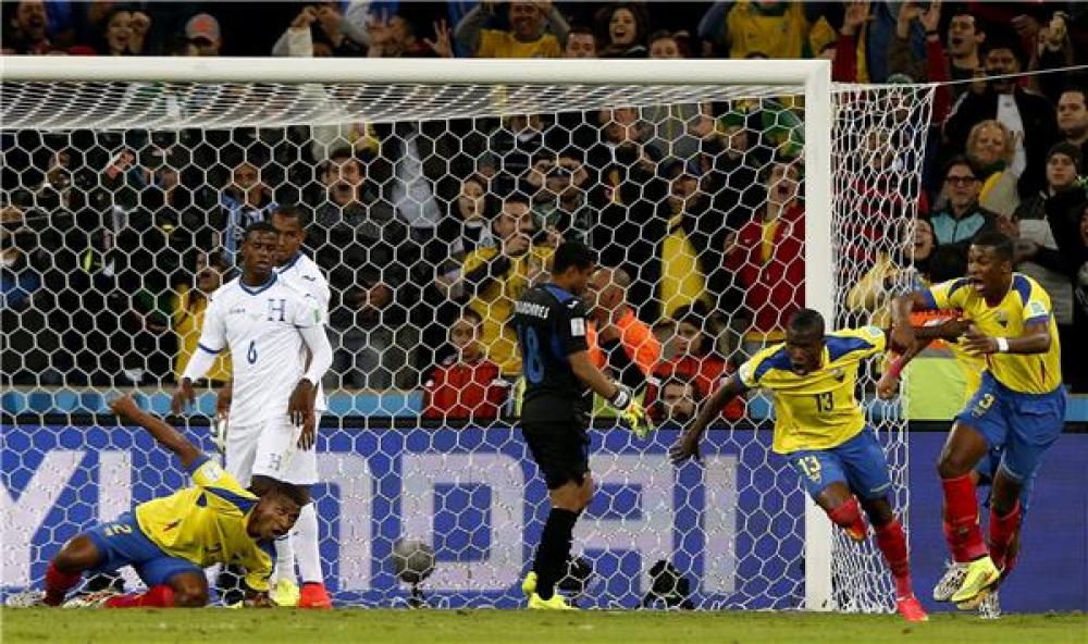 حافظ منتخب الإكوادور على حظوظه بالتأهل للدور الثاني من مونديال البرازيل 2014, إثر فوزه الثمين على هندوراس بهدفين مقابل هدف واحد فجر السبت, ضمن منافسات المجموعة الخامسة من المسابقة. ورغم تقدم هندوراس عبر كارلو كوستلي في الدقيقة 31, إلا أن الإكوادور ردّت بهدفين سجلهما إينير فالنسيا في الدقيقتين 34, و65 على التوالي. وبهذا الفوز ارتقت الإكوادور للمركز الثاني برصيد 3 نقاط, وبفارق الأهداف أمام سويسرا, في حين بقيت هندوراس دون نقاط في المركز الرابع والأخير، علماً أن فرنسا تتصدر ترتيب فرق المجموعة برصيد 6 نقاط.